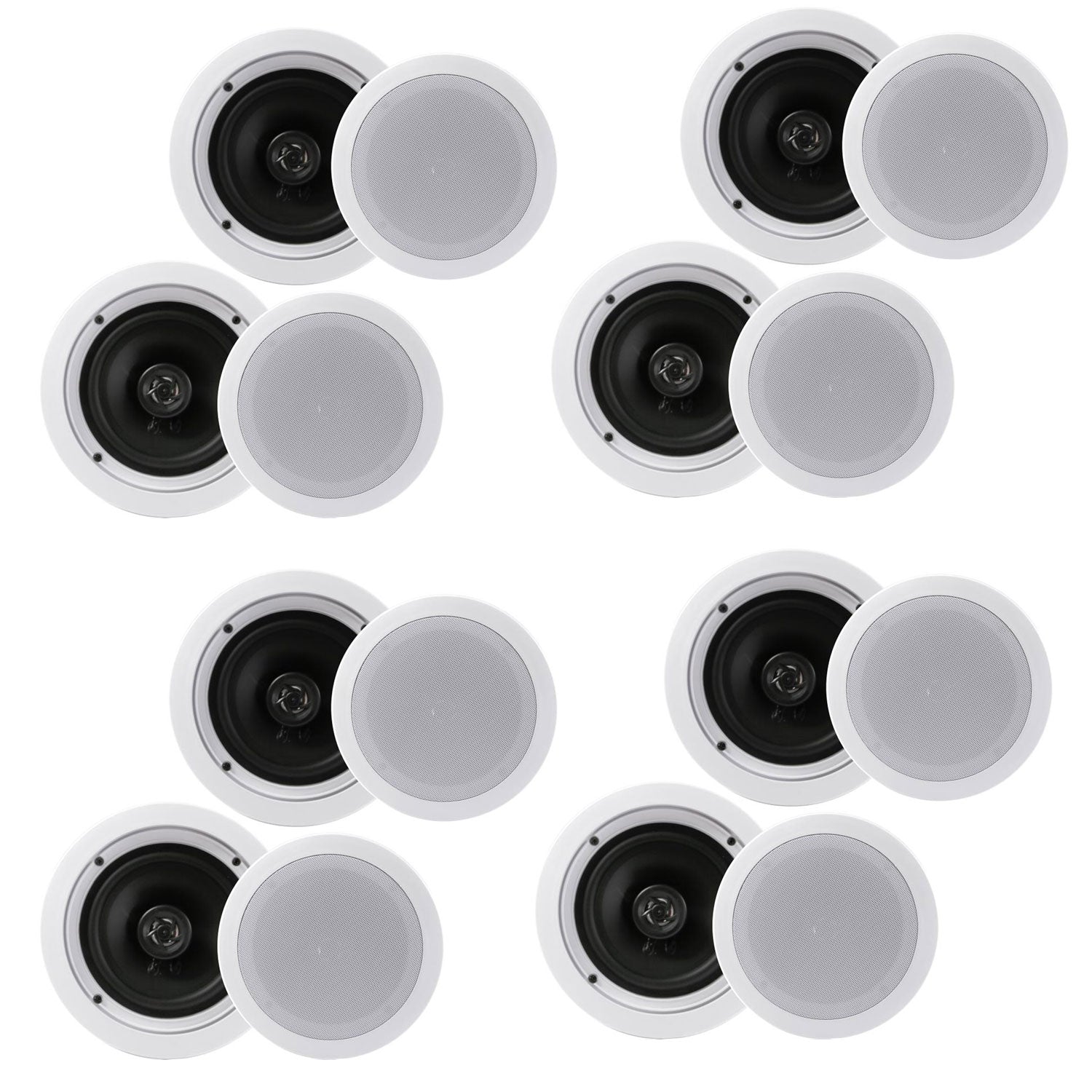 - Includes 4 pairs (8 speakers total) of 6.5-inch in-wall ceiling speaker systems for amazing sound in any room of the house