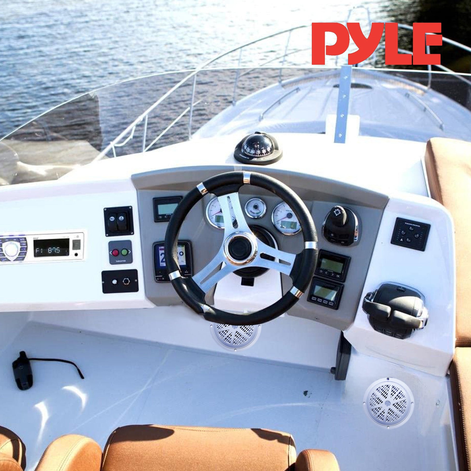 Transform your marine vehicle and watercraft sound system with the Pyle PLMRKT36WT 5.25 Inch Bluetooth Marine Stereo Receiver & Speaker Kit.
