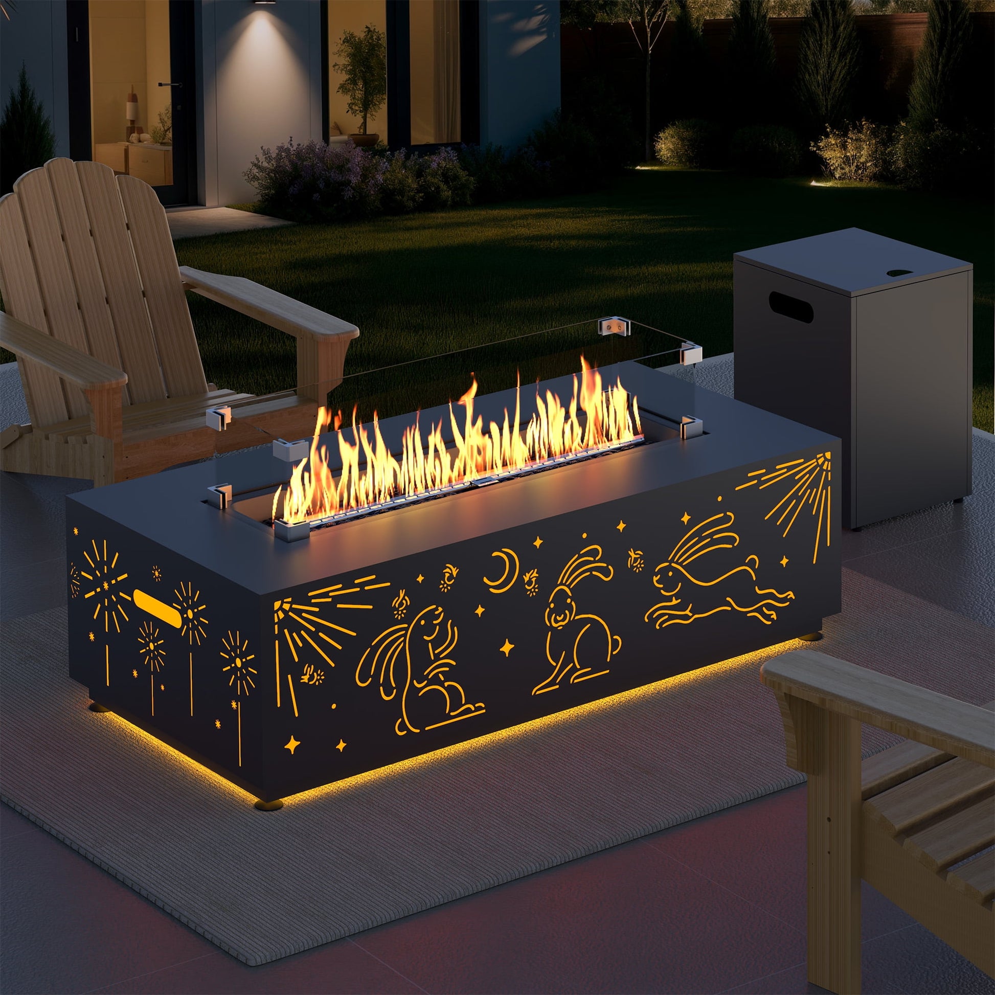 RADIATA 42" Rectangle Fire Pit Table, Dual-Fuel (Propane or Natural Gas), 50000 BTU,LED Rabbit Light, CSA Certified, Dark Gray