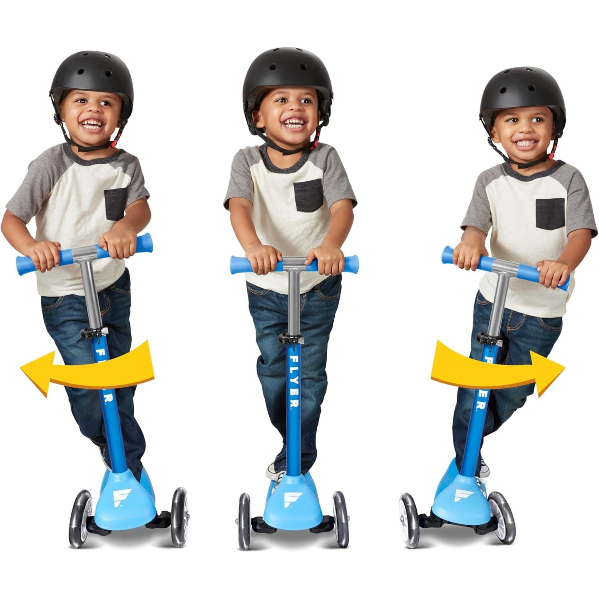 Learn to glide with the Flyer Glider Jr. with Light Up Wheels! This high-performance, 3-wheel kid scooter grows with your toddler as they learn to ride. The premium polyurethane wheels of this kids scooter 3-5 feature LED lights and high-performance bearings, which offer a fast ride and propel your child further with fewer kicks. The nylon clamp adjusts the scooter for toddler handlebar to any height, ensuring years of fun. Lean-to-steer technology improves balance and makes carving and turning fun on this 3 year old scooter! The durable nylon-composite deck of this kids 3 wheel scooter is flexible and absorbs shock which provides a smooth, safe ride on any sidewalk. This scooter for girls and boys also features a quick stopping foot brake for added control. The Flyer™ Glider Jr. with Light Up Wheels little kid scooter is available in red, blue, and pink. Recommended for ages 2-5 years. Maximum weight capacity 44 lbs. For additional questions, support, or concerns, please contact our customer service team at https://www.radioflyer.com/customer-service/ or 1 (800) 621-7613.
