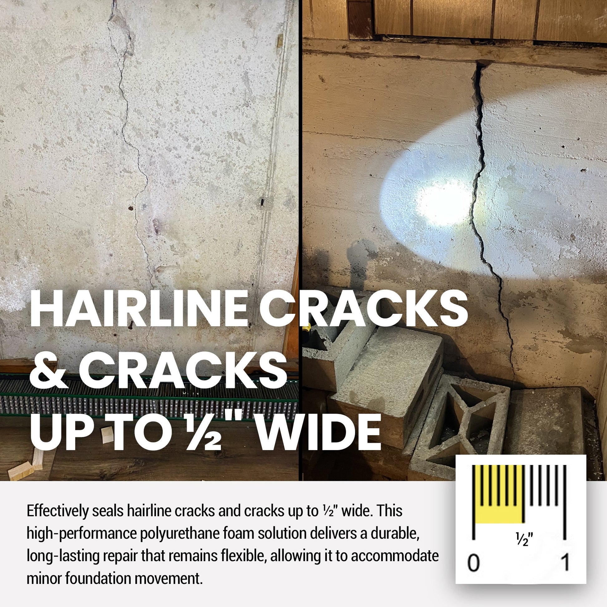 - Seal even the smallest cracks permanently with the specialized urethane, preventing further water seepage and damage.