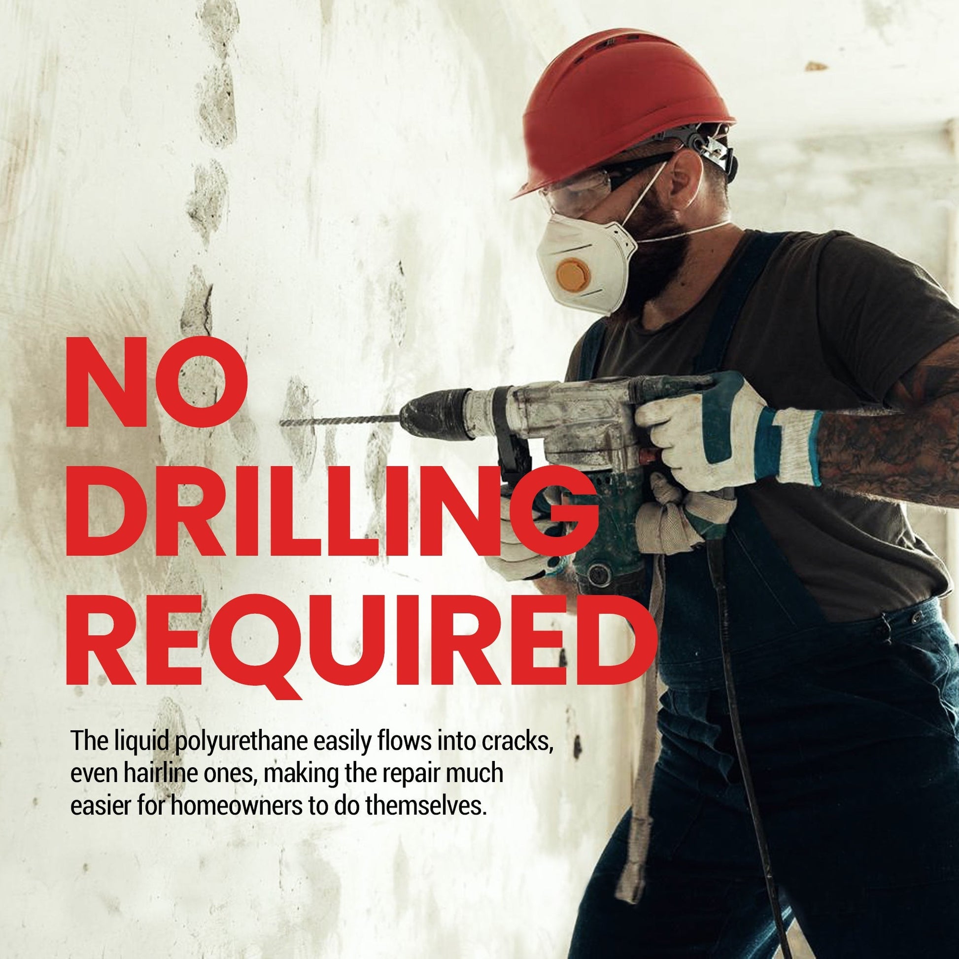 - Use a standard caulking gun to inject the low-viscosity, 2-component urethane, making the process accessible for any homeowner.