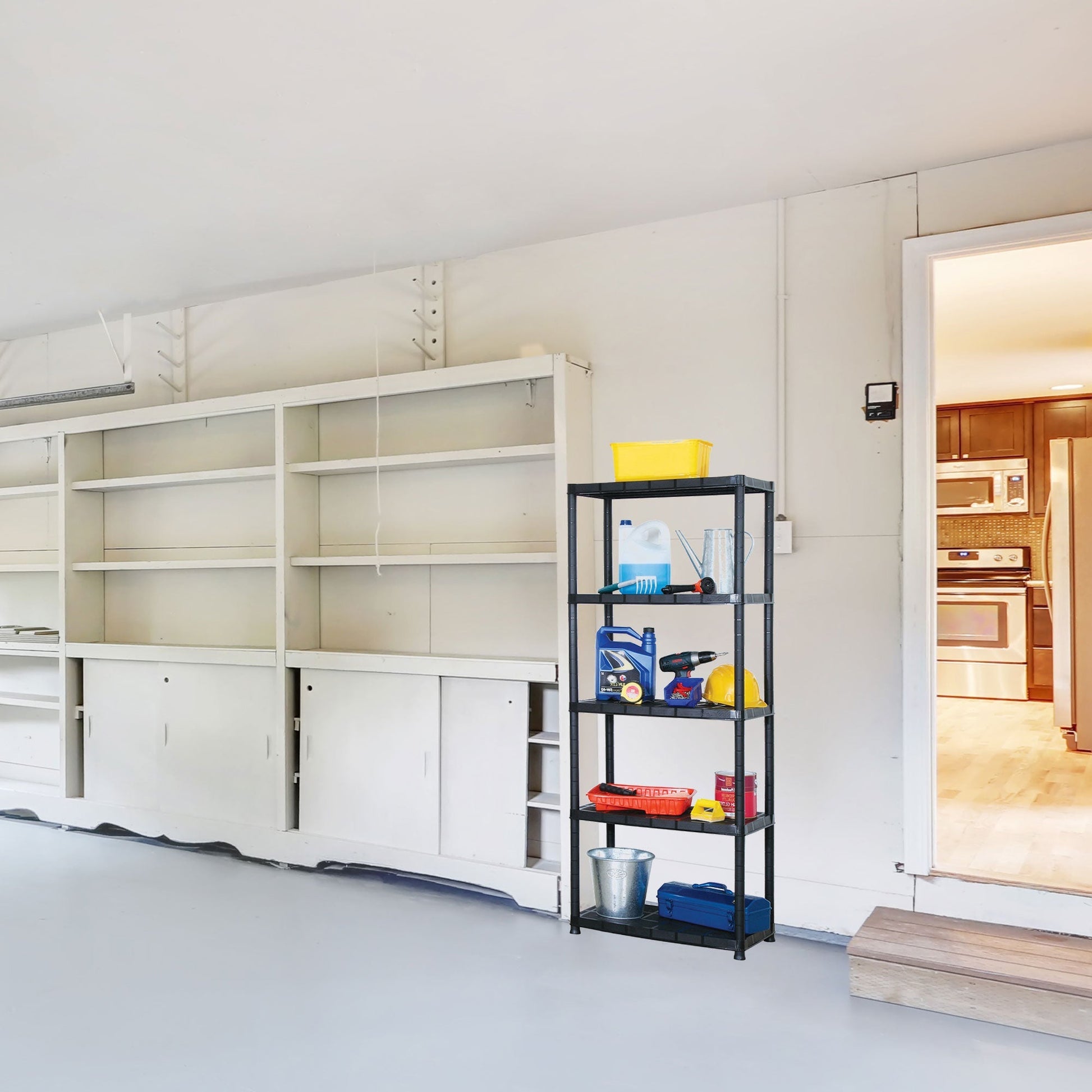 Ram Quality Products Optimo 16 inch 5 Tier Plastic Storage Shelves, Black