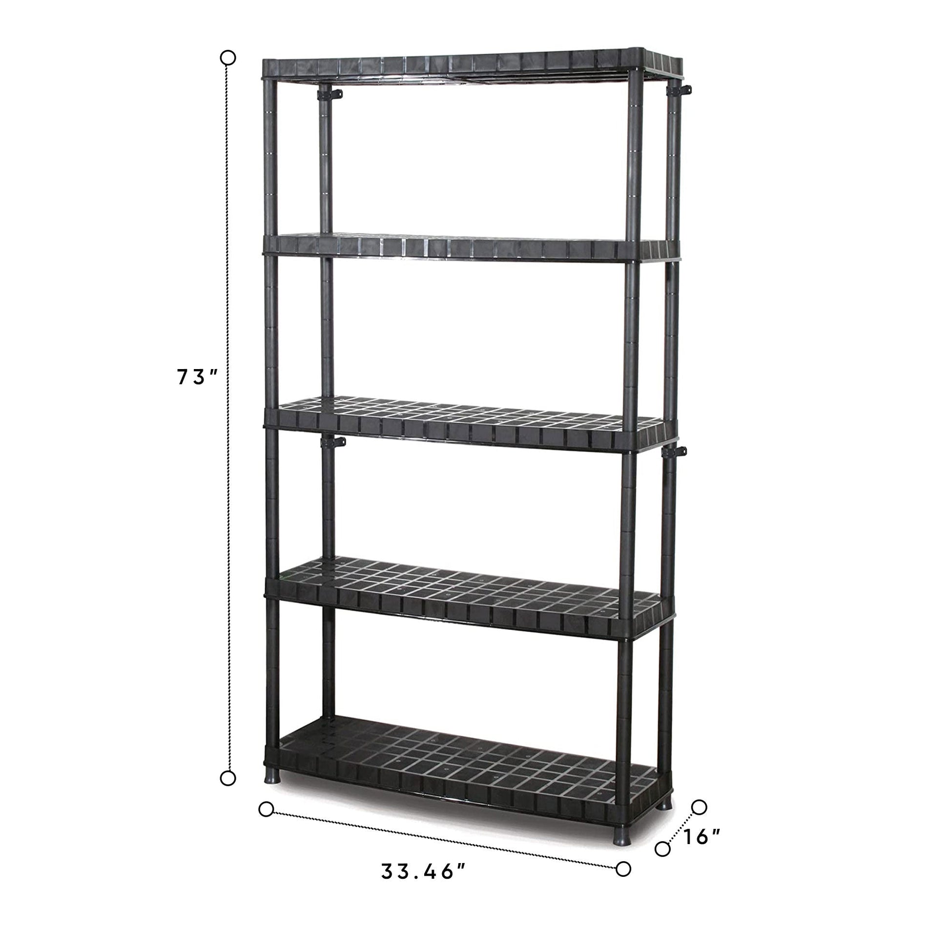 These storage shelves are TUV tested, which means you can rest easy knowing they were crafted with safety top of mind. And with a weight capacity of 130 pounds per shelf, you can load your new unit to your heart's desire. Take the clutter out of your home and spark more joy with the Ram Quality Products Optimo 16 inch 5 Tier Plastic Shelves, Black.
