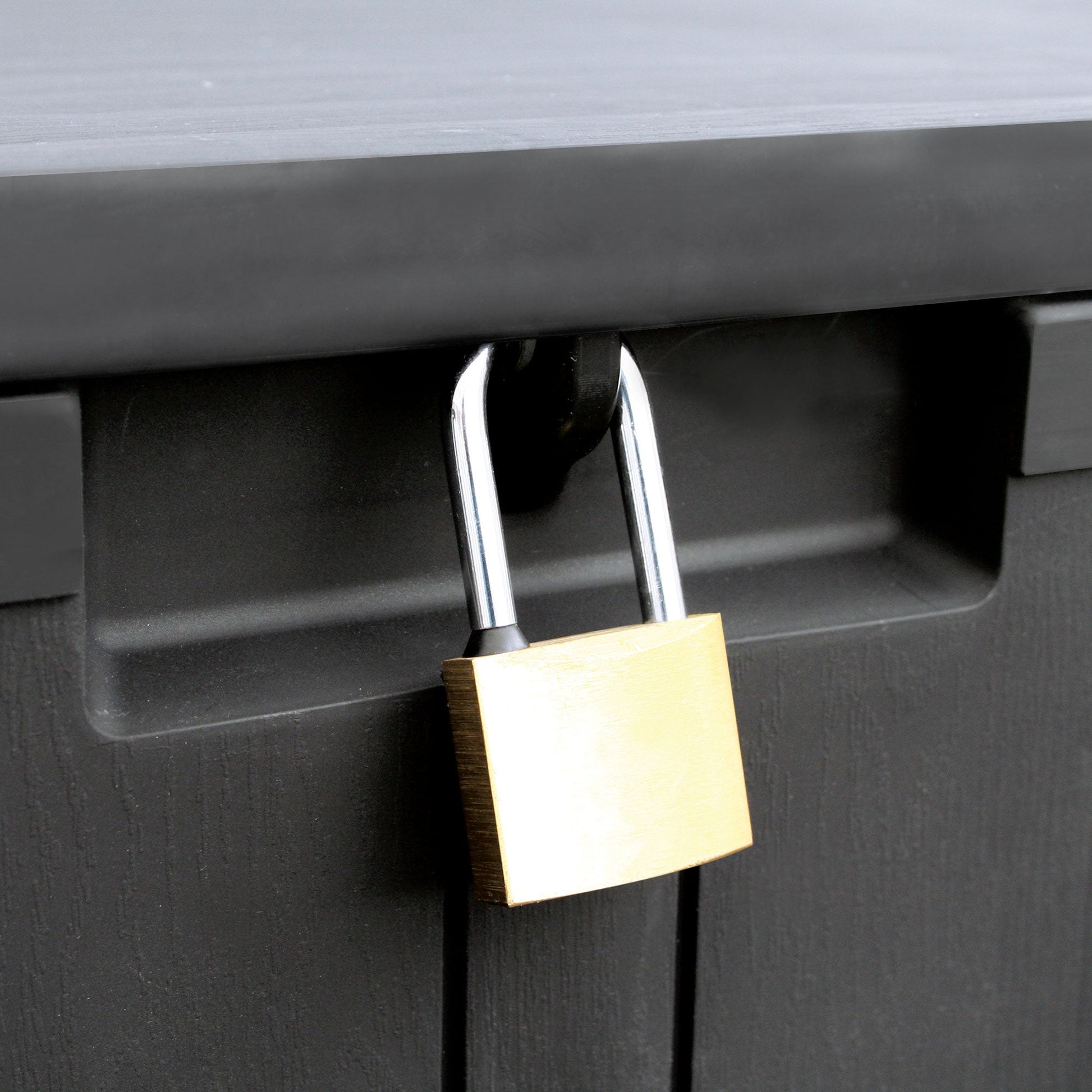 This durable plastic storage unit can be placed in any room inside or out to provide additional organization spaces and make the most of your living space. The heavy-duty plastic construction is designed to withstand even the harshest weather conditions mother nature has to offer. Plus, the lockable design allows you to add a lock for additional security (lock not included). The simple yet stylish outdoor container is sure to mesh well with any outdoor decor where you need extra storage space.