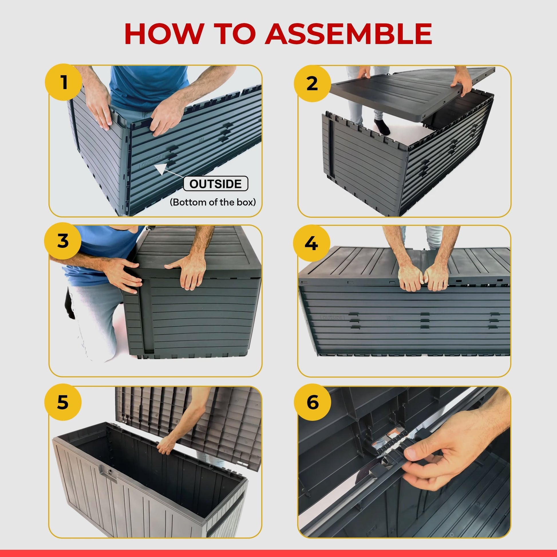 The simple yet stylish outdoor container is sure to mesh well with any outdoor decor where you need extra storage space. This outdoor storage deck box is easy to assemble and clean, just wipe it down with a damp cloth. Measures 48 inches long, 24 inches wide, and 22.4 inches tall, this storage deck box features 4 corner protection with rounded edges that protect those passing by from accidentally snagging a sharp edge of the box.