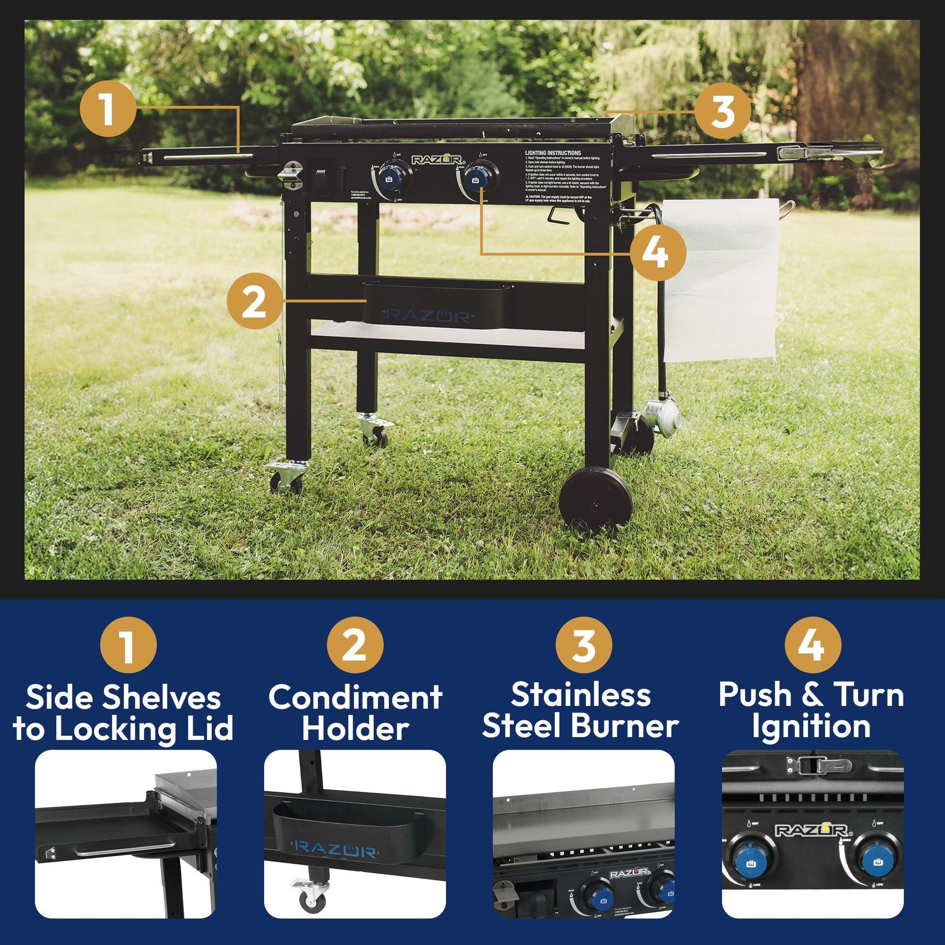 Razor Griddle Portable 2 Burner 30,000 BTU Gas Grill & Griddle Cart w/Shelves