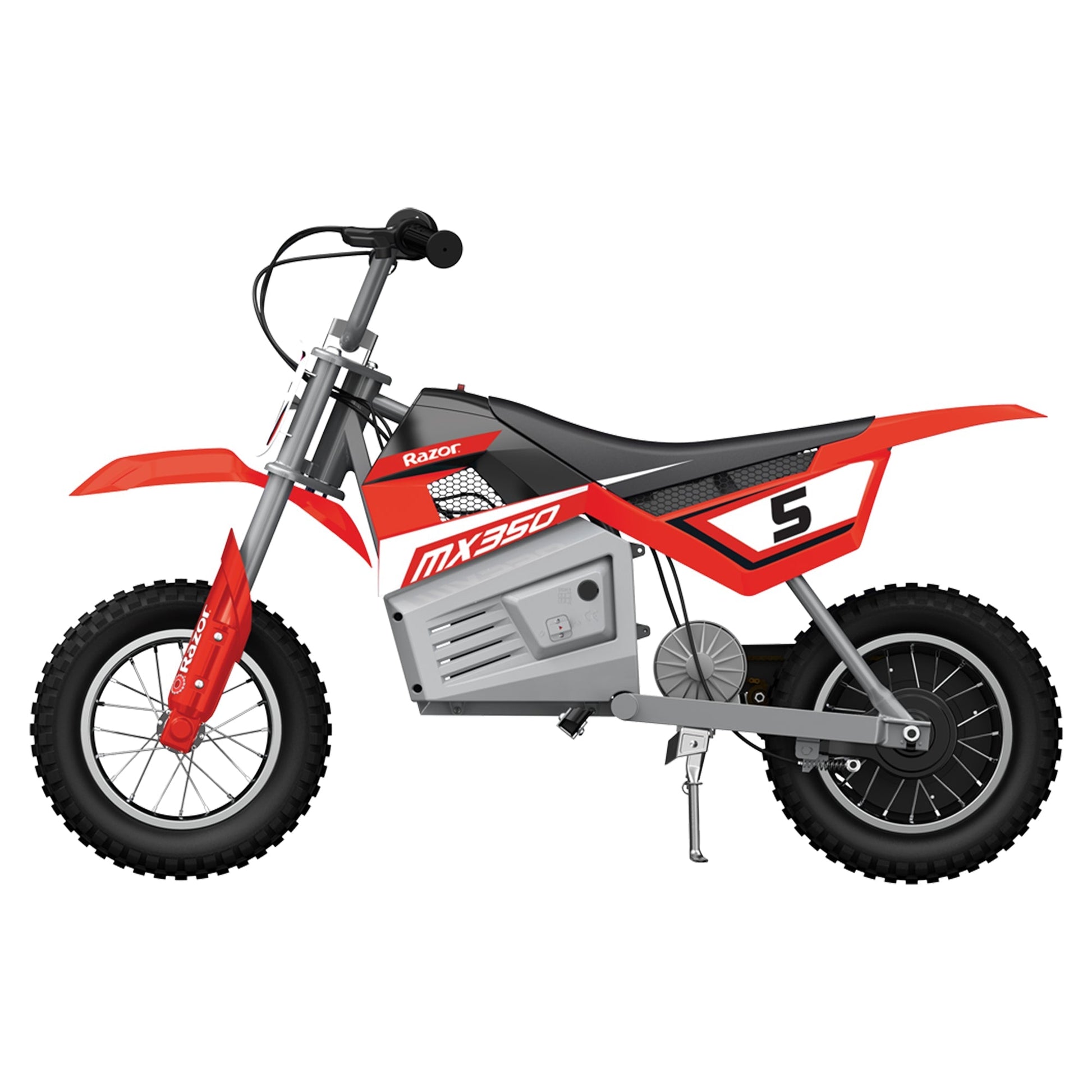 Your kids aren't afraid of a little dirt. These 2 Razor MX350 Dirt Rockets are ideal for kids and teens ages 13 years and older who want to enjoy a revved-up version of the off-road dirt bike experience.