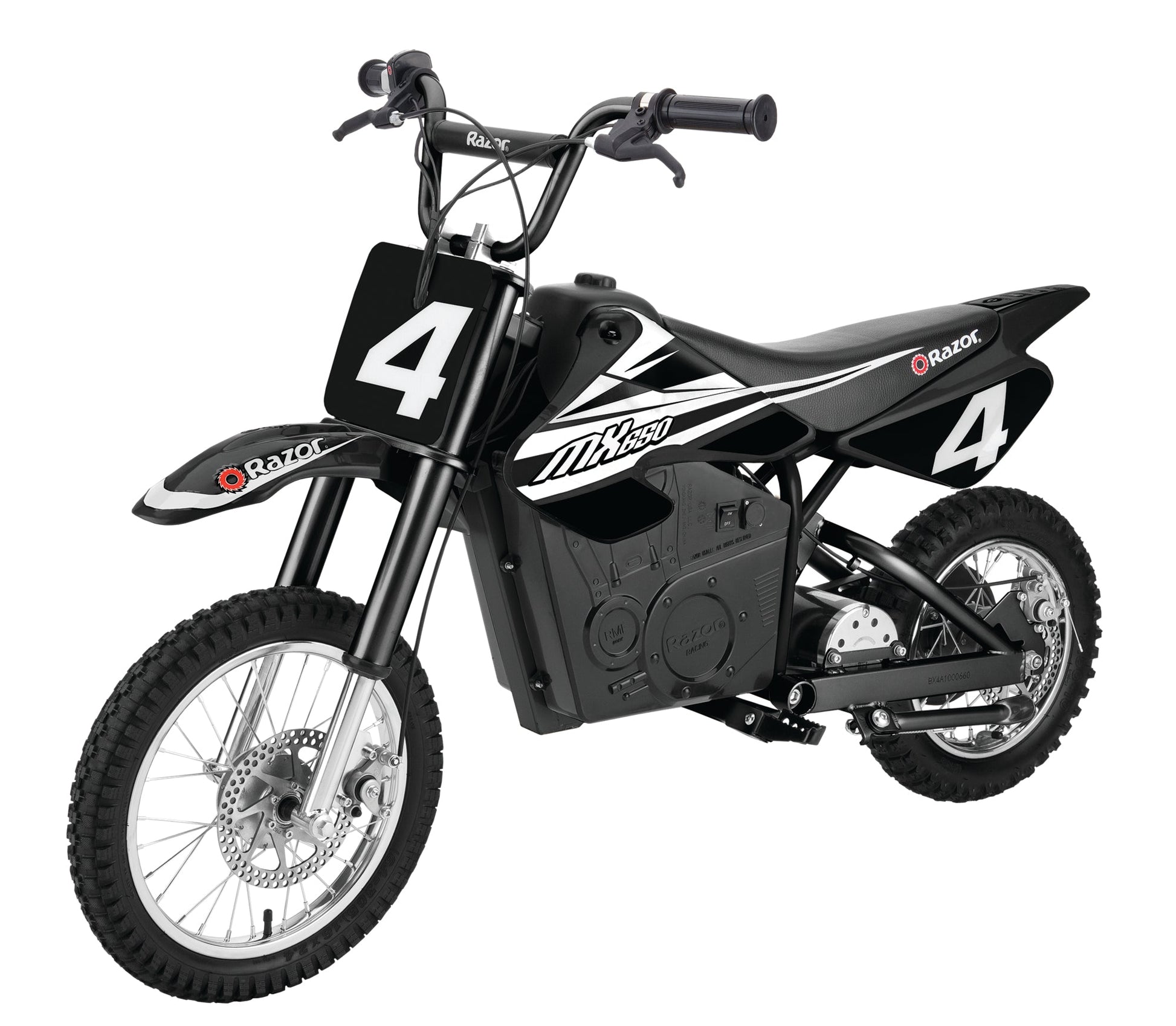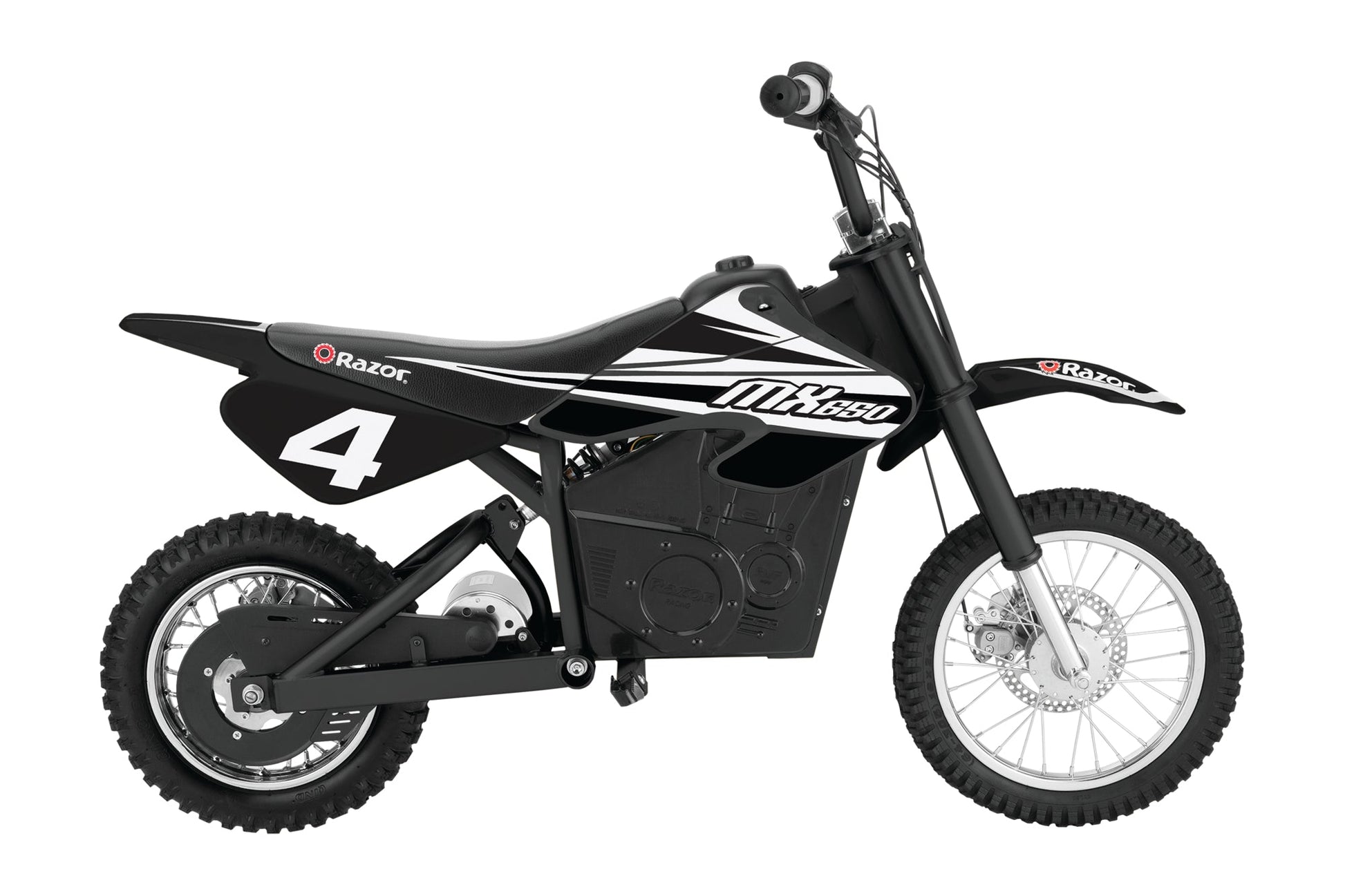 - Razor MX400 is geared for dirt with large 12-inch pneumatic knobby tires for maximum power transfer
