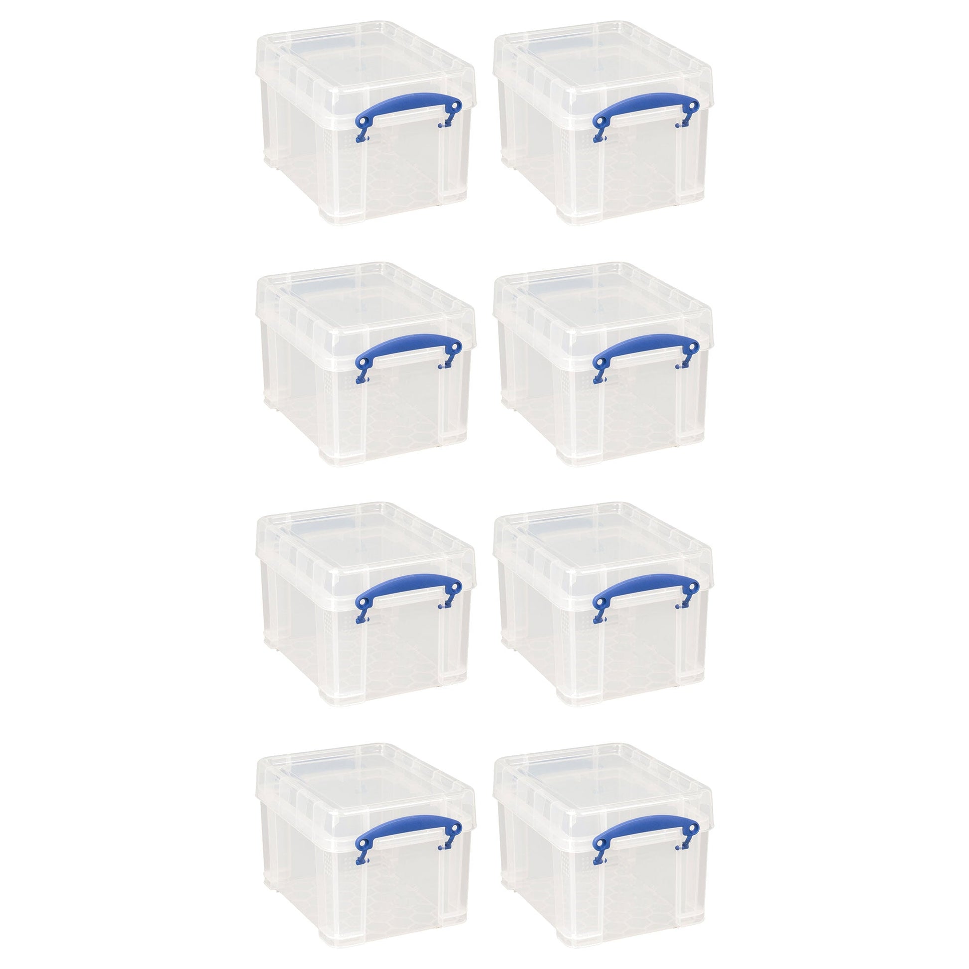 Really Useful Box 3 Liter Snap Lid Storage Bin for Music Storage, 8 Pack, Clear