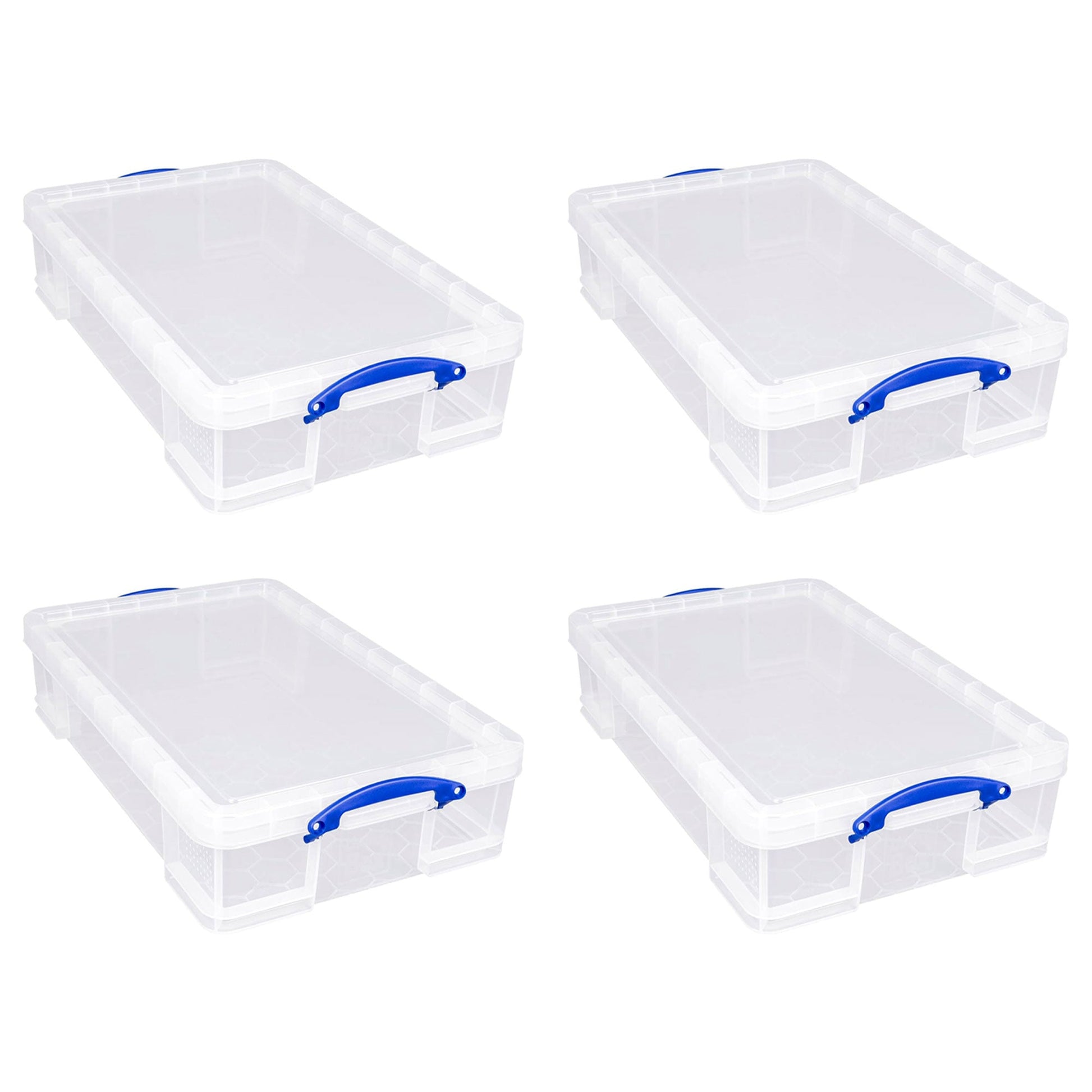 Really Useful Box 33L Storage Container w/Snap Lid & Clip Lock Handle, 4 Pack