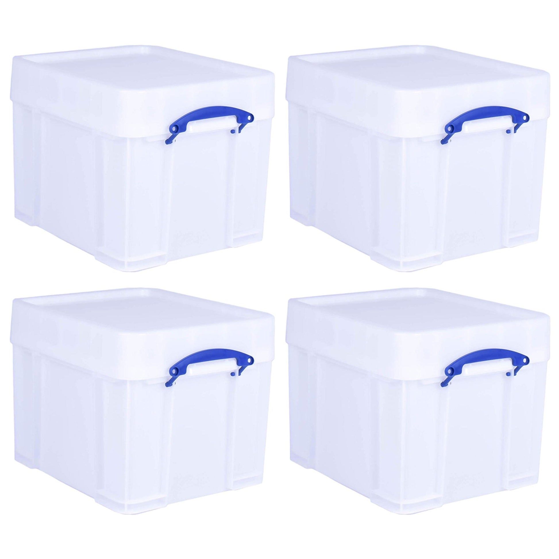 Really Useful Box 35 Liter Extra Strong Plastic Storage Box with XL Lid, 4 Pack