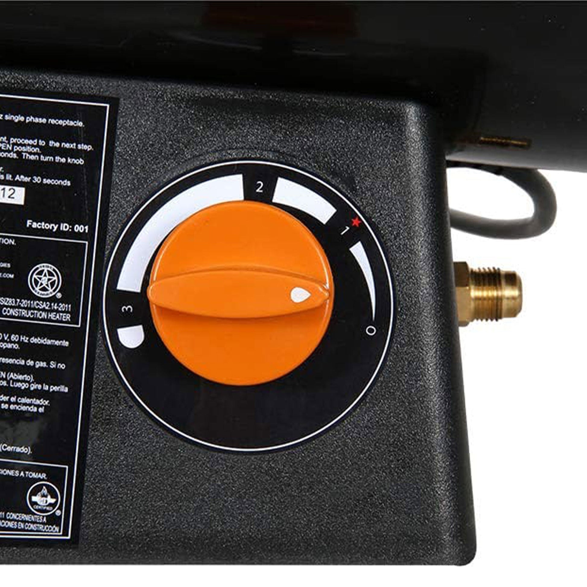 Equipped with electronic ignition, this heater ensures effortless startup, while variable heat settings let you customize warmth to your preference. Powered by a 20-pound propane tank (not included) and an electric cord, it delivers consistent performance throughout long work hours. Safety is a top priority, with advanced features like a high-temperature limit shut-off, flame-out fuel cut, and a thermocouple that automatically stops fuel flow if necessary, providing peace of mind while in use.
