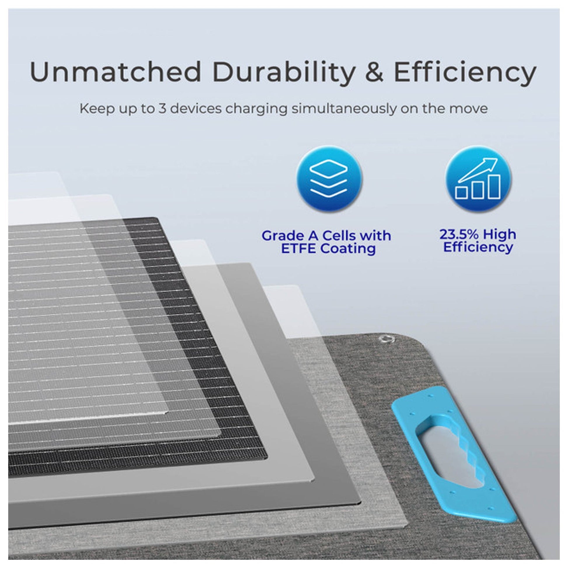 - High Power Efficiency: Achieve an impressive 23.5% power conversion efficiency with Grade A solar battery cells and ETFE material, ensuring reliable energy output for your essential devices