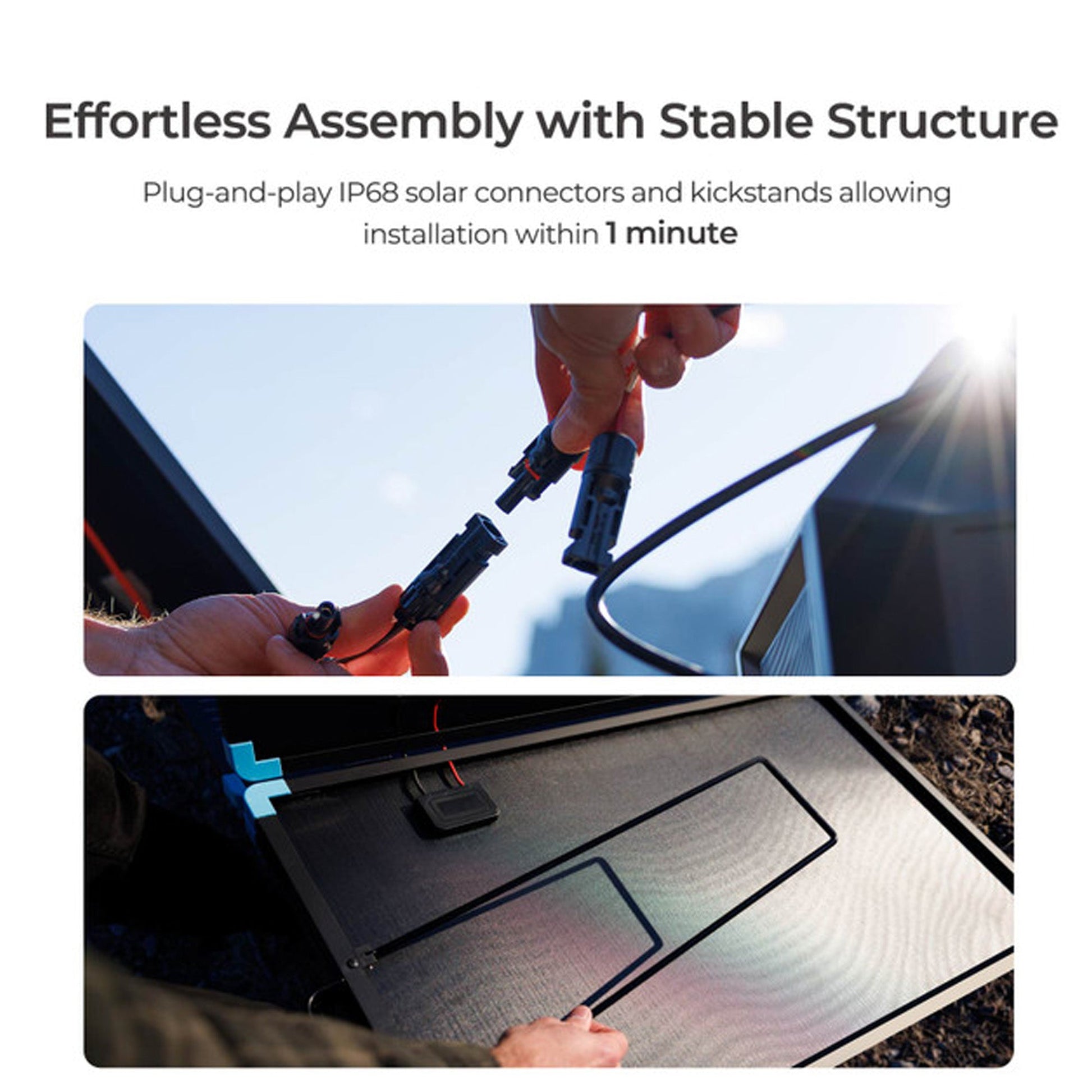 - Features durable aluminum kickstands for a one-minute setup, allowing effortless charging during outdoor activities