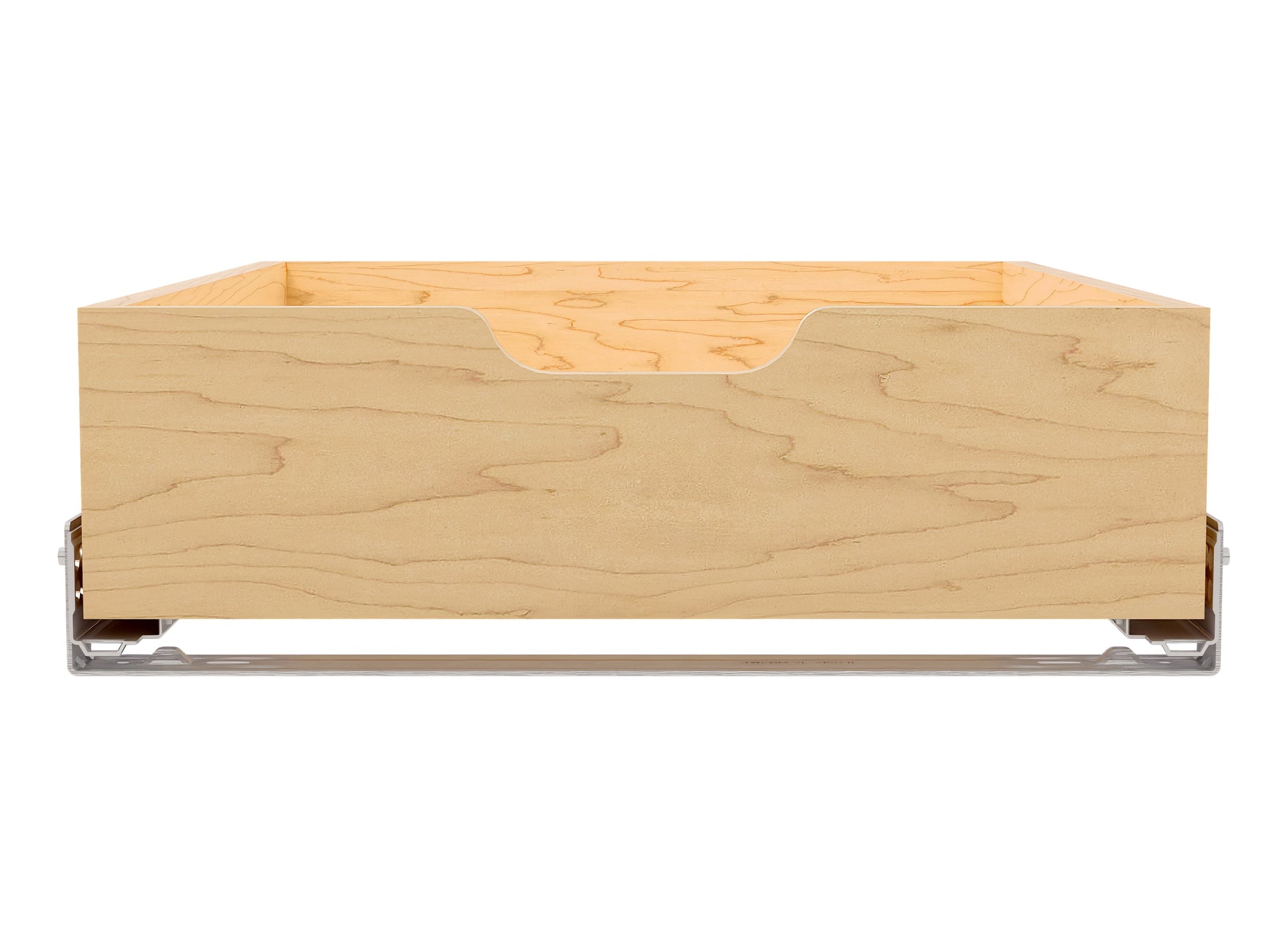 Easily access baking ingredients, pasta, cereal, snacks, cookware, and other kitchen accessories with the Rev-A-Shelf Kitchen Wood Standard Cabinet Pullout Drawer with Soft-close.