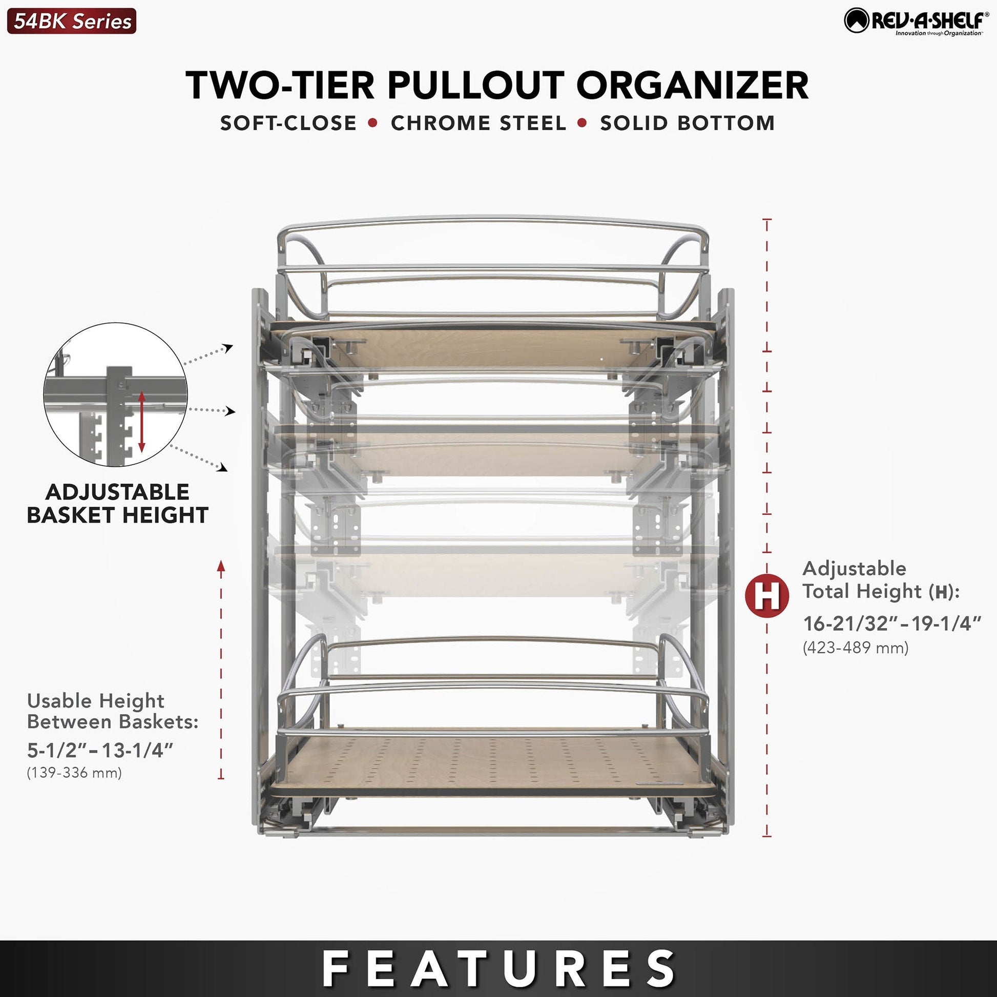 Rev-A-Shelf Two-Tier Solid Bottom Pullout Base Cabinet Organizer, 54BK-18SC-2-1
