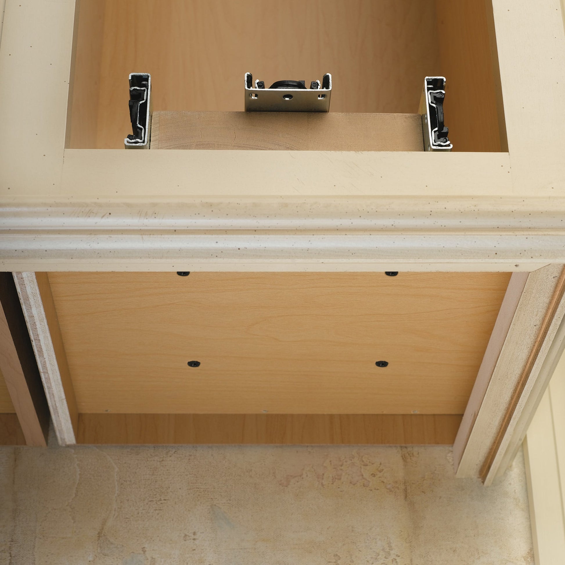 - Mounts to an existing cabinet floor; comes fully assembled and ready to install; once installed simply attach your own cabinet door