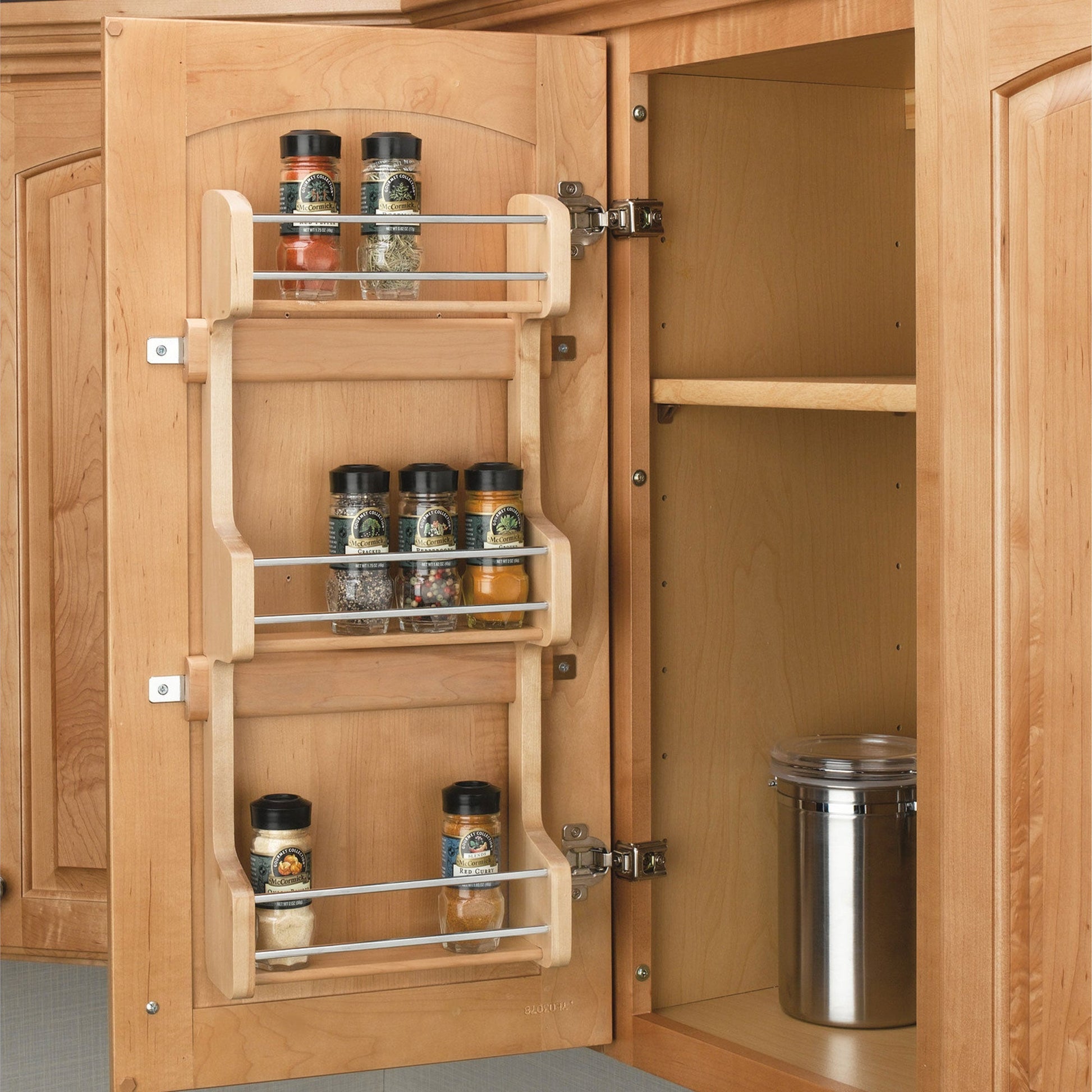 Organizing your favorite array of kitchen spices just got easier with the Rev-A-Shelf 4SR-15 15'' Cabinet Door Mount Wood 3-Shelf Storage Spice Rack.