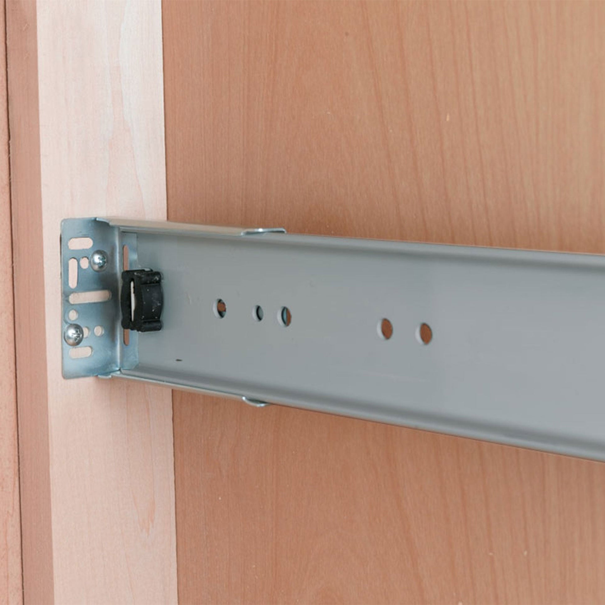 - Simple but effective 3-piece zinc plated full-extension ball-bearing slide system for organizing almost any kitchen