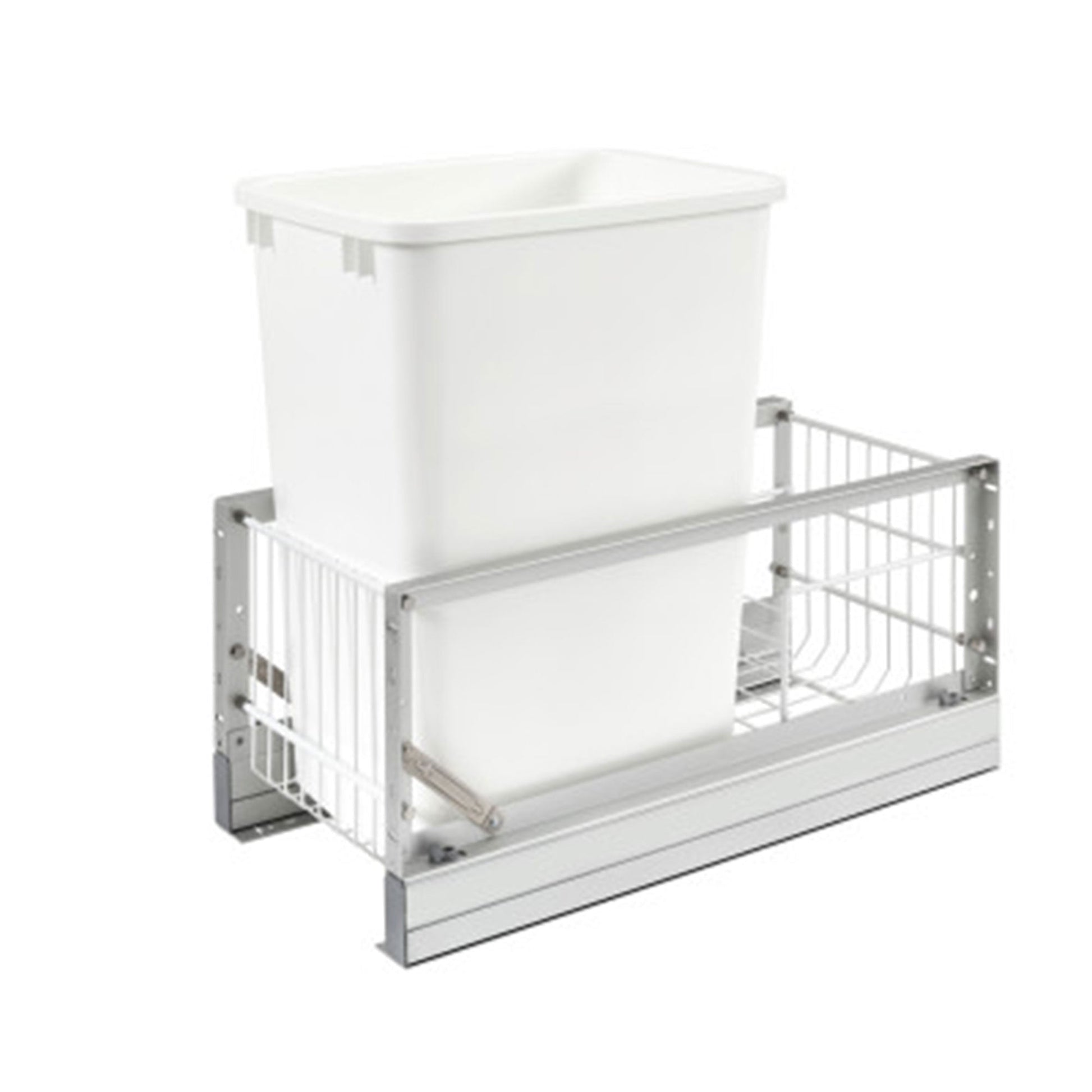Upgrade your kitchen with the innovative pullout trash can solution Rev-A-Shelf's 5349 series provides. Tailored for under-cabinet use, this under-counter garbage bin seamlessly integrates into your kitchen, allowing for a tidy and organized space. With its discreet under-mount design, this kitchen hideaway optimizes space, ensuring your counters remain clutter-free and functional. Experience the convenience of effortless waste disposal with the smooth gliding and soft-closing feature, making kitchen cleanup a breeze. Say goodbye to unsightly trash bins and embrace the streamlined elegance of this under-cabinet waste management solution.