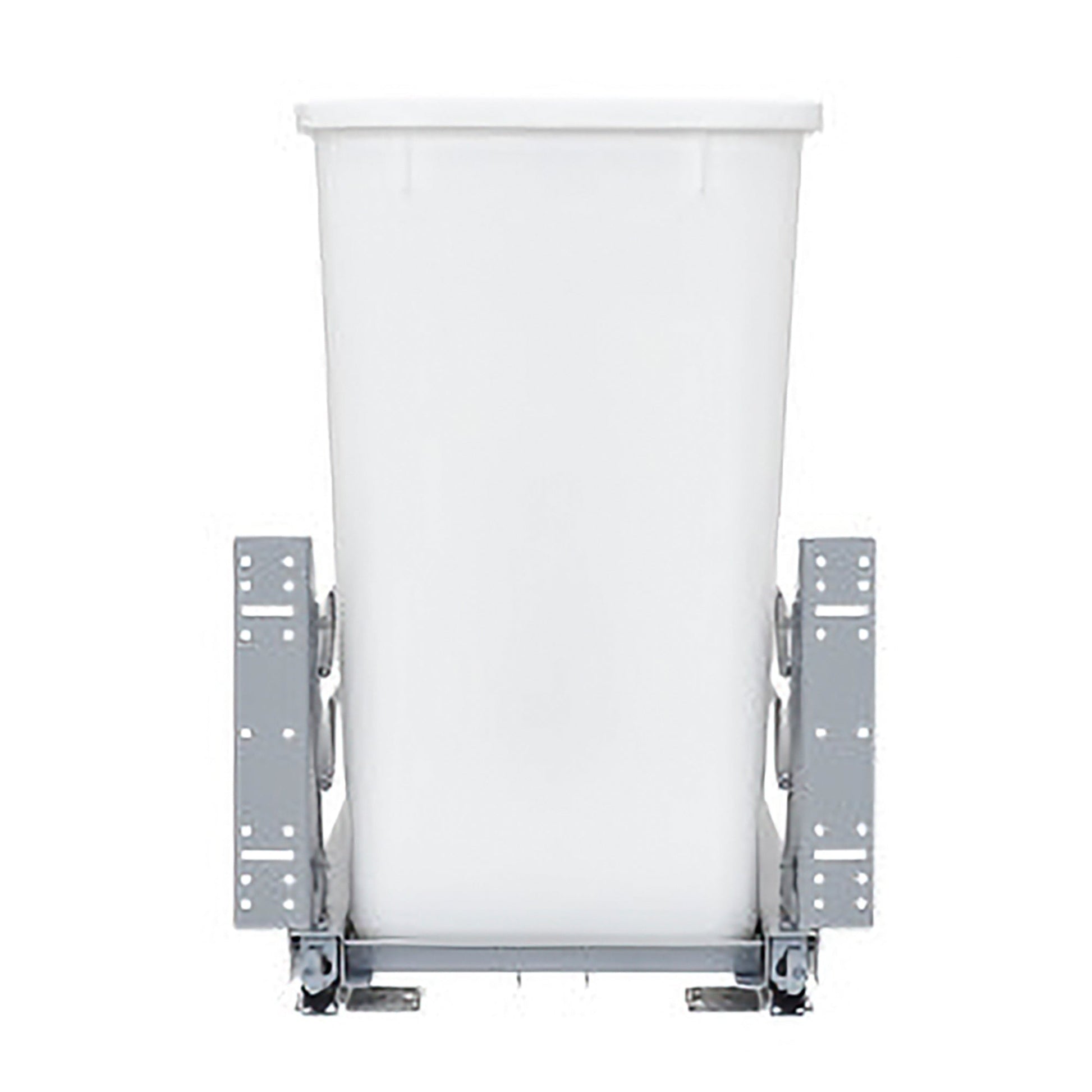 Designed for a cabinet opening width of 11- ½" to 15 inches, these space-saving trash containers come with all the hardware you need to install this pullout trash can system. With an easy-to-install design for a no-fuss setup, this system includes (2) white 27 qt. waste containers with mounting hardware.