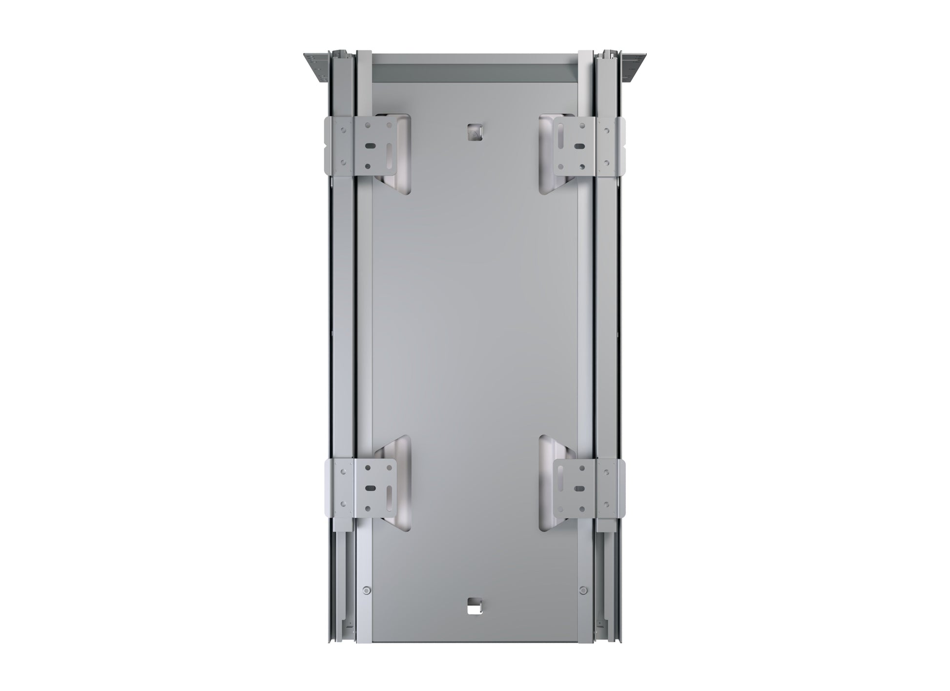 - Mounts to cabinet floor and cabinet door attached to the unit for operation
