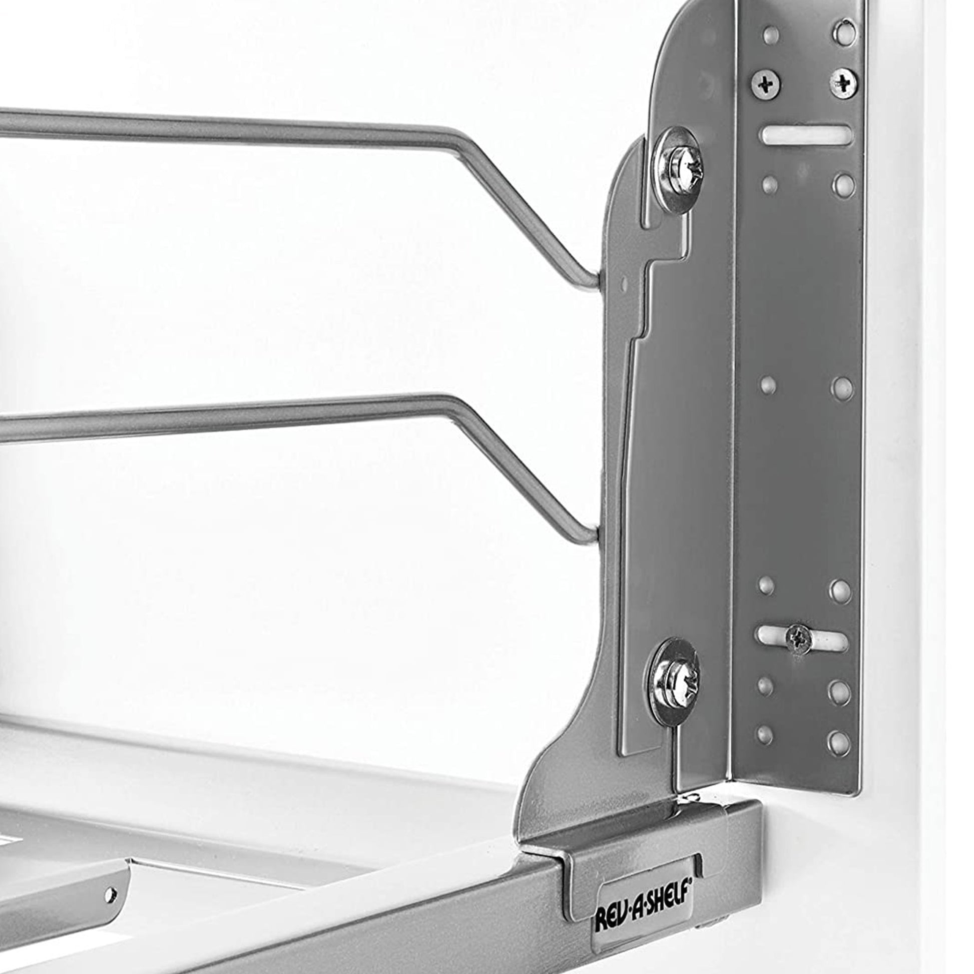 Double check your cabinet's opening (inside dimensions) to allow the best fit. Measure side to side (width), front to back (depth or length), and top to bottom (height). Double check to make sure your product is within measurements and don't forget to take into account any obstructions (plumbing, hinges, etc.). Enjoy a spacious, functional kitchen, thanks to this Rev-A-Shelf Pullout Trash Bin.
