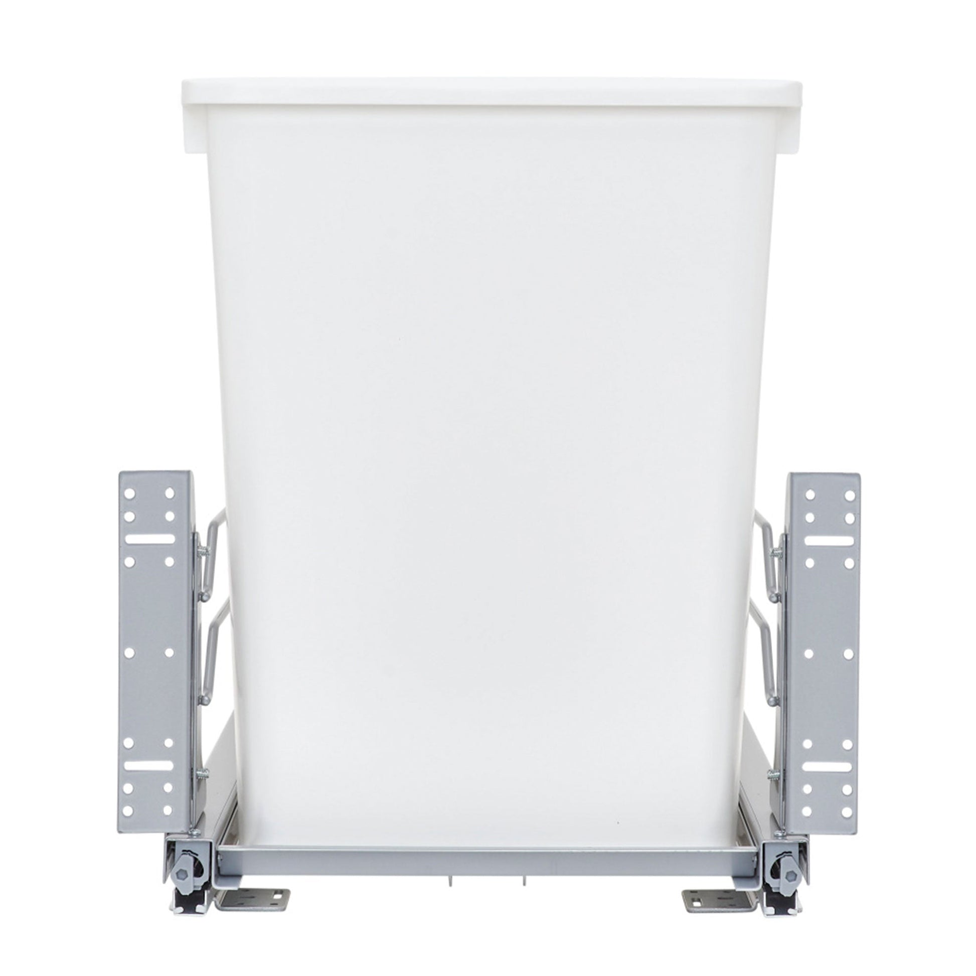 Designed for a cabinet opening width of 14- ½" to 18 inches, this space-saving trash containers come with all the hardware you need to install this pullout trash can system. With an easy-to-install design for a no-fuss setup, this system includes (2) white 35 qt. waste containers with mounting hardware.