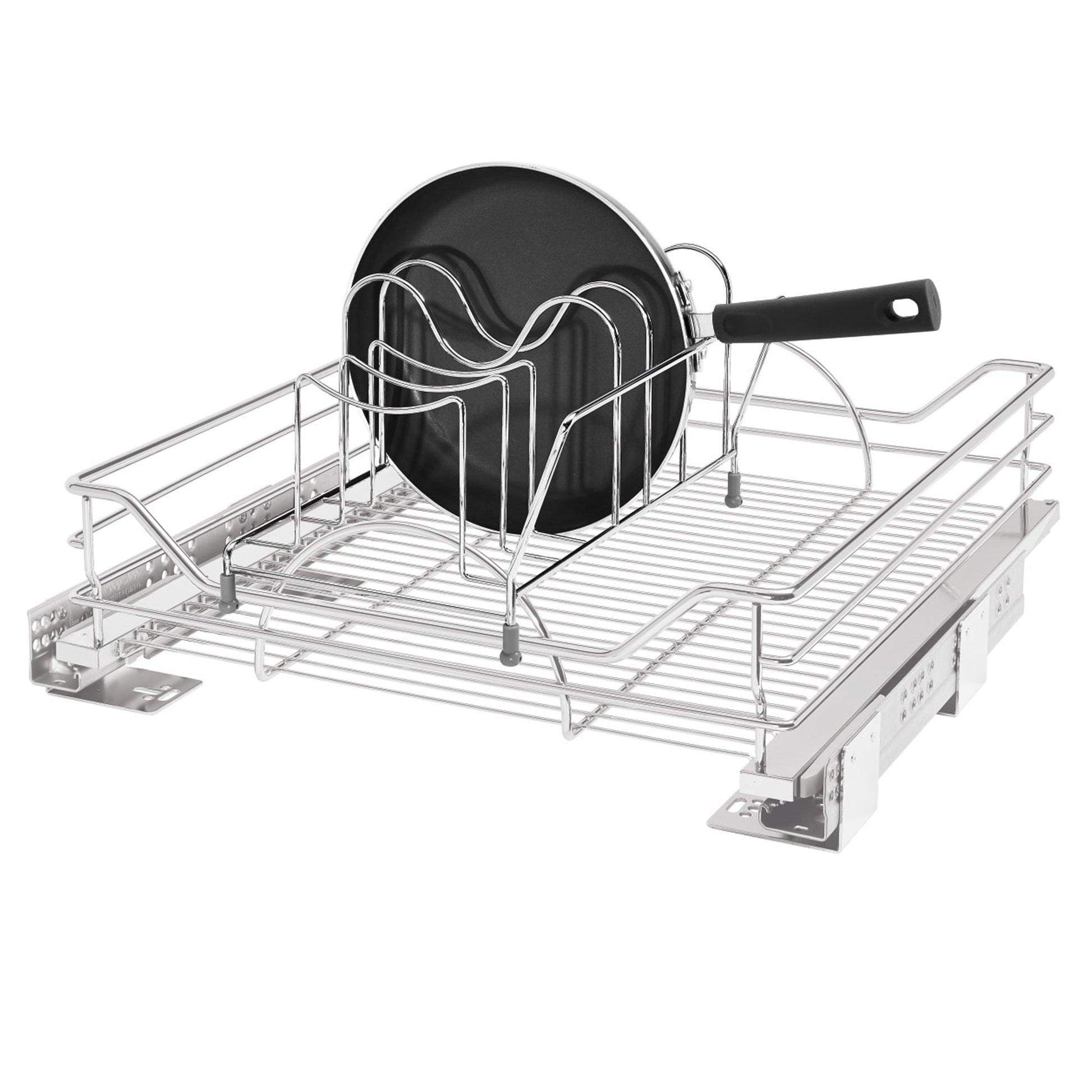 Easily access pots, pans, lids, stand mixers, and other kitchen accessories with the Rev-A-Shelf Kitchen Cabinet Pullout Wire Basket.