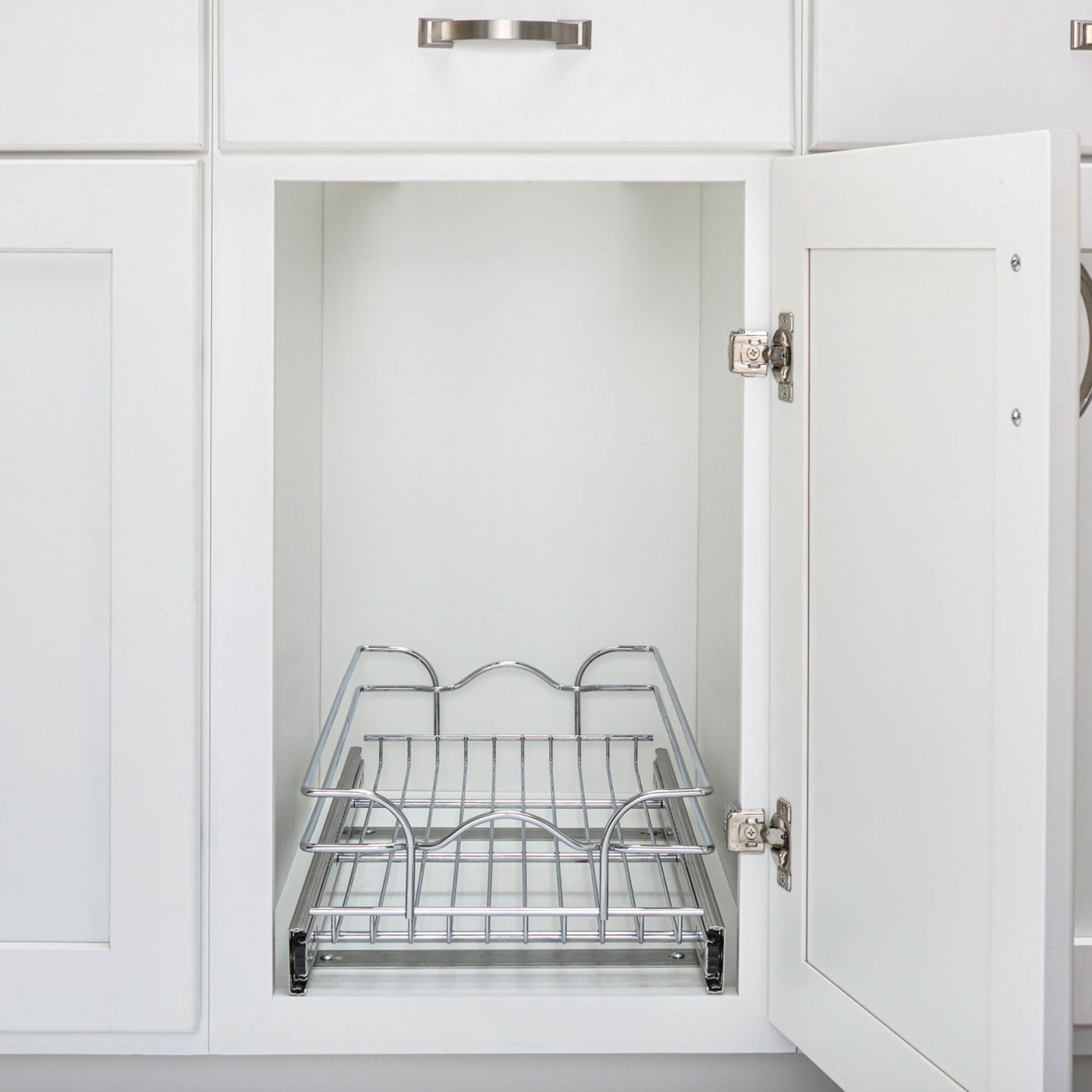 Organize your cabinets with simplicity and style with the Rev-A-Shelf Kitchen Cabinet Pullout Wire Basket.