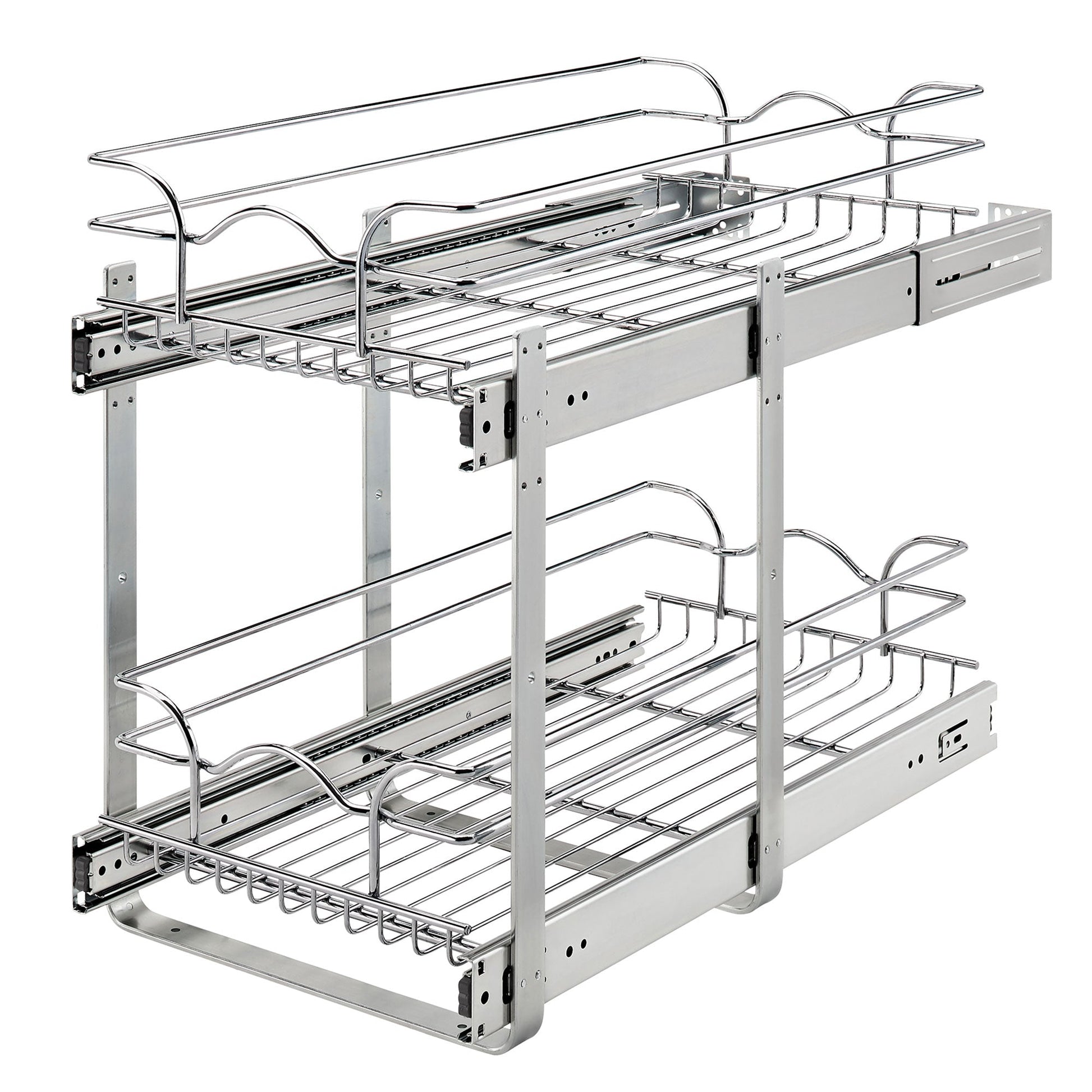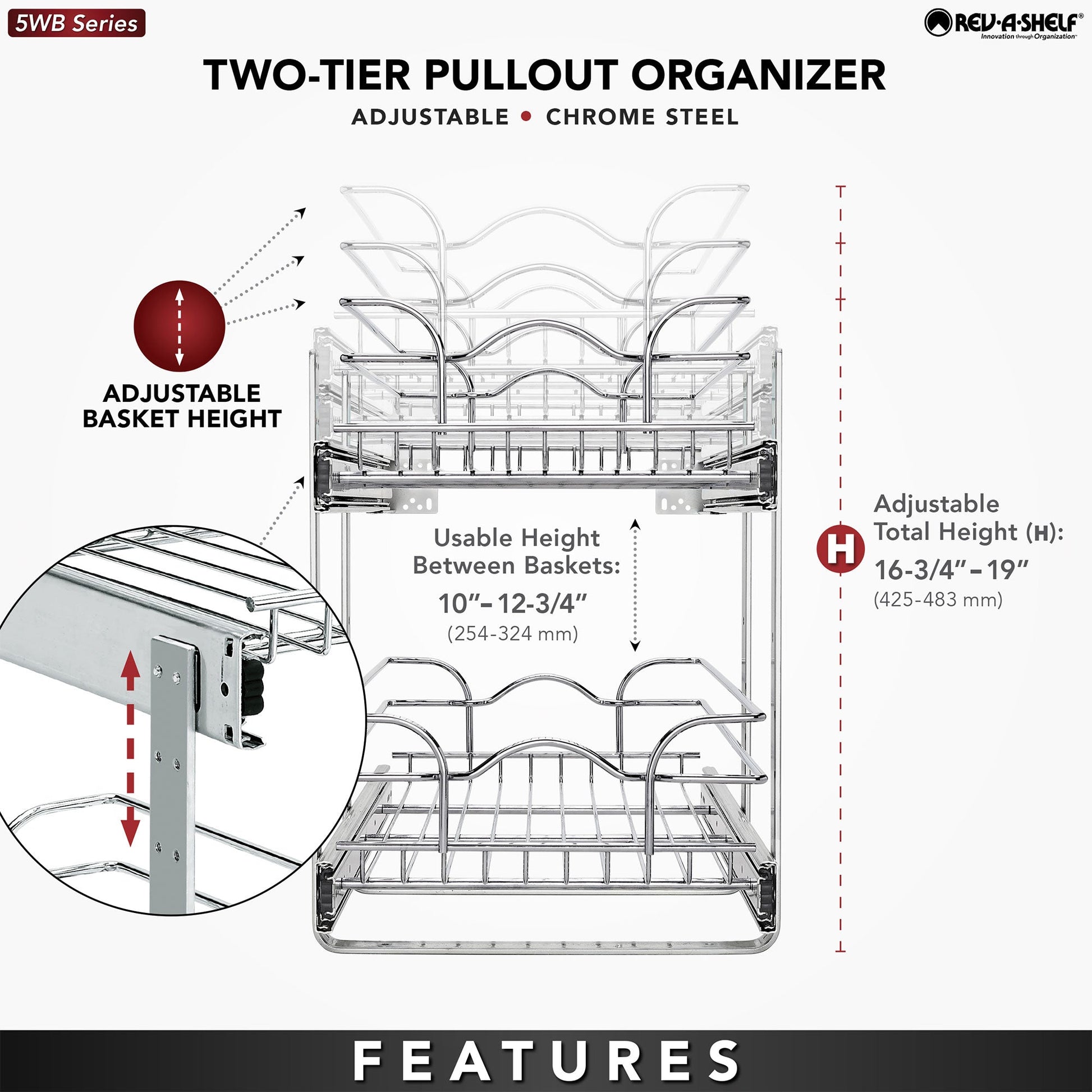 Make the most of your cabinet space with the Rev-A-Shelf 2-Tier Wire Pullout Cabinet Drawer Basket.