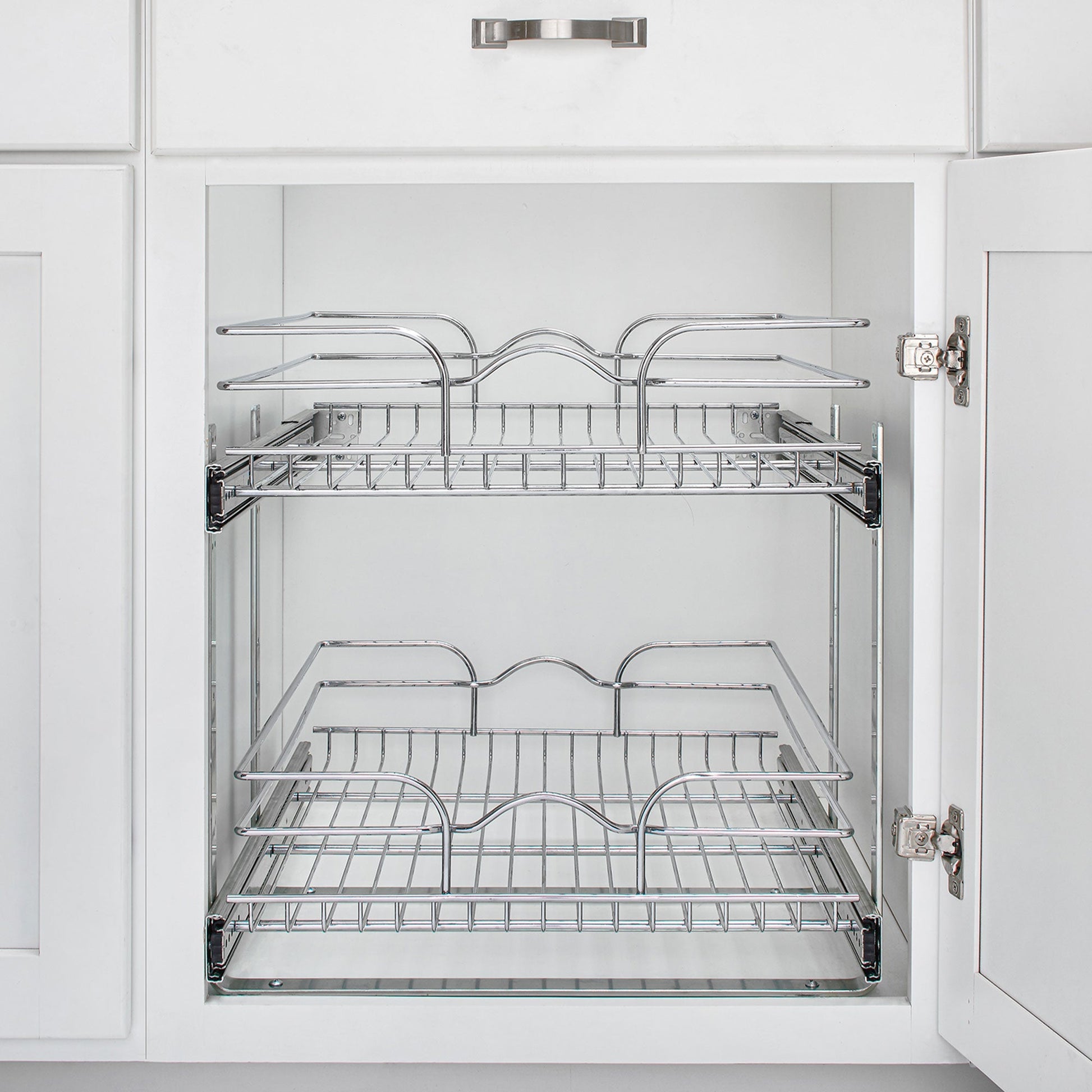 Make the most of your cabinet space with the Rev-A-Shelf 2-Tier Wire Pullout Cabinet Drawer Basket.