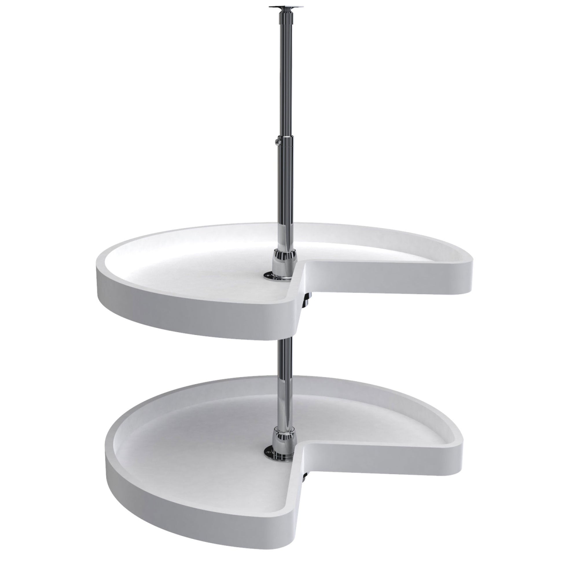 - Kidney-shaped two-shelf 24'' lazy susan is made to maximize storage space in your kitchen to keep canned food and spices organized
