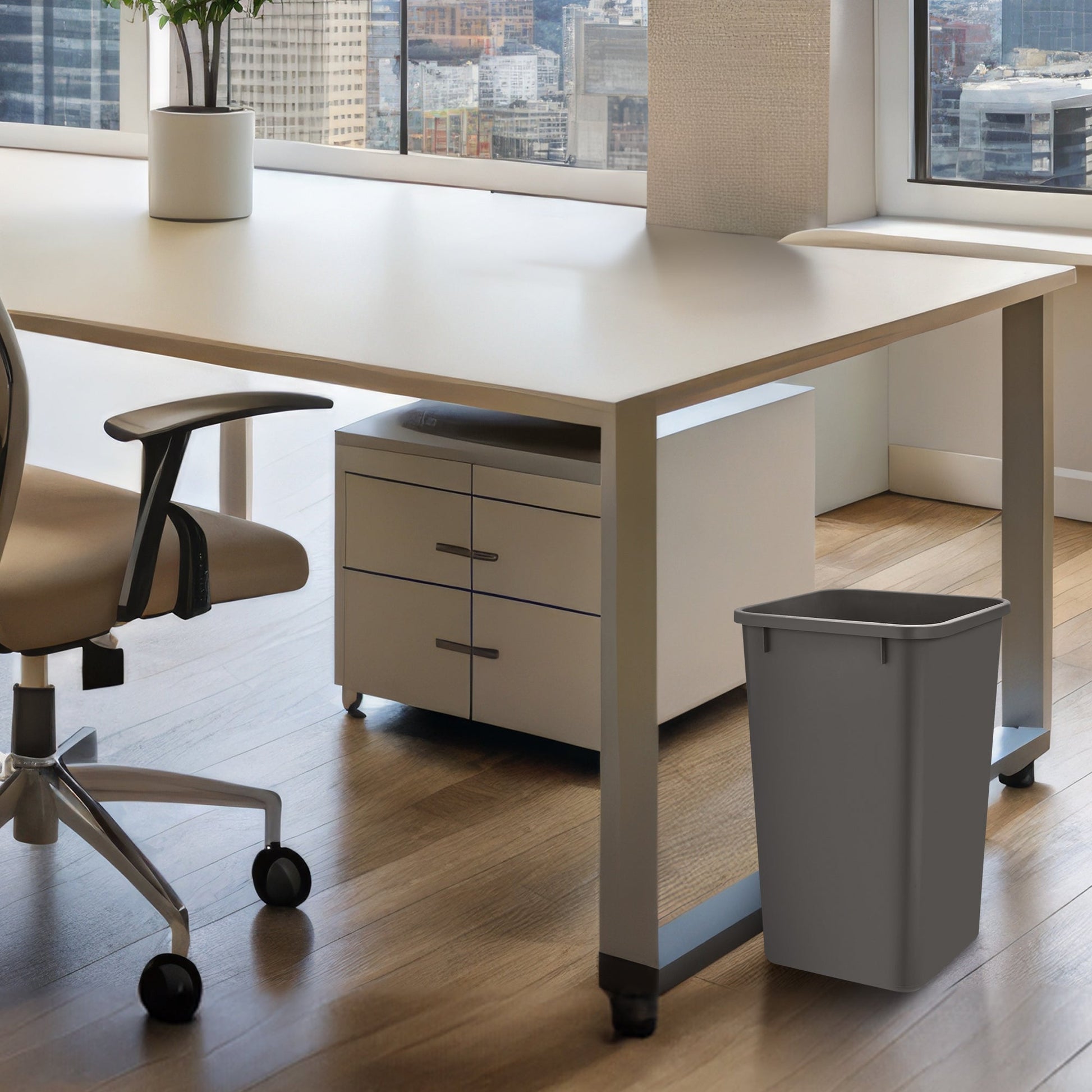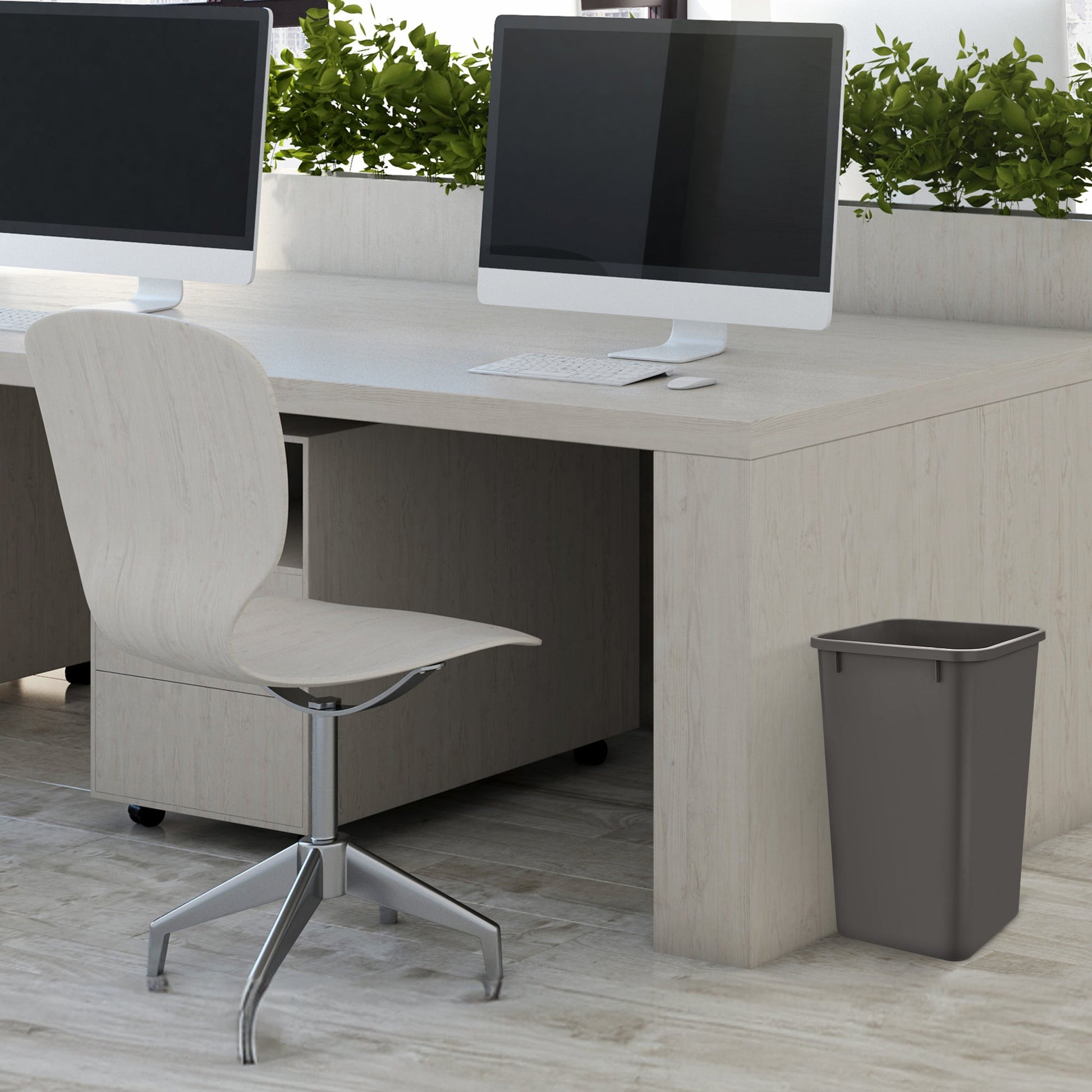 Made of injection molded polymer plastic for increased durability, the double waste containers will be an ideal addition to your home to hide away the trash and ensure your kitchen smells fresh at all times. Though designed to work with all of the Rev-A-Shelf waste containers and trash Pullouts, they can also be used to hold extra trash or recyclable items no matter where you need them, whether it be inside or outside. The 27 qt. capacity will keep you from having to empty the basket numerous times a day for ultimate convenience. With a neutral orion gray color, these modern waste bins will fit perfectly inside your cabinets or can be left out and placed beside a kitchen cabinet, bedroom dresser, or bathroom sink.