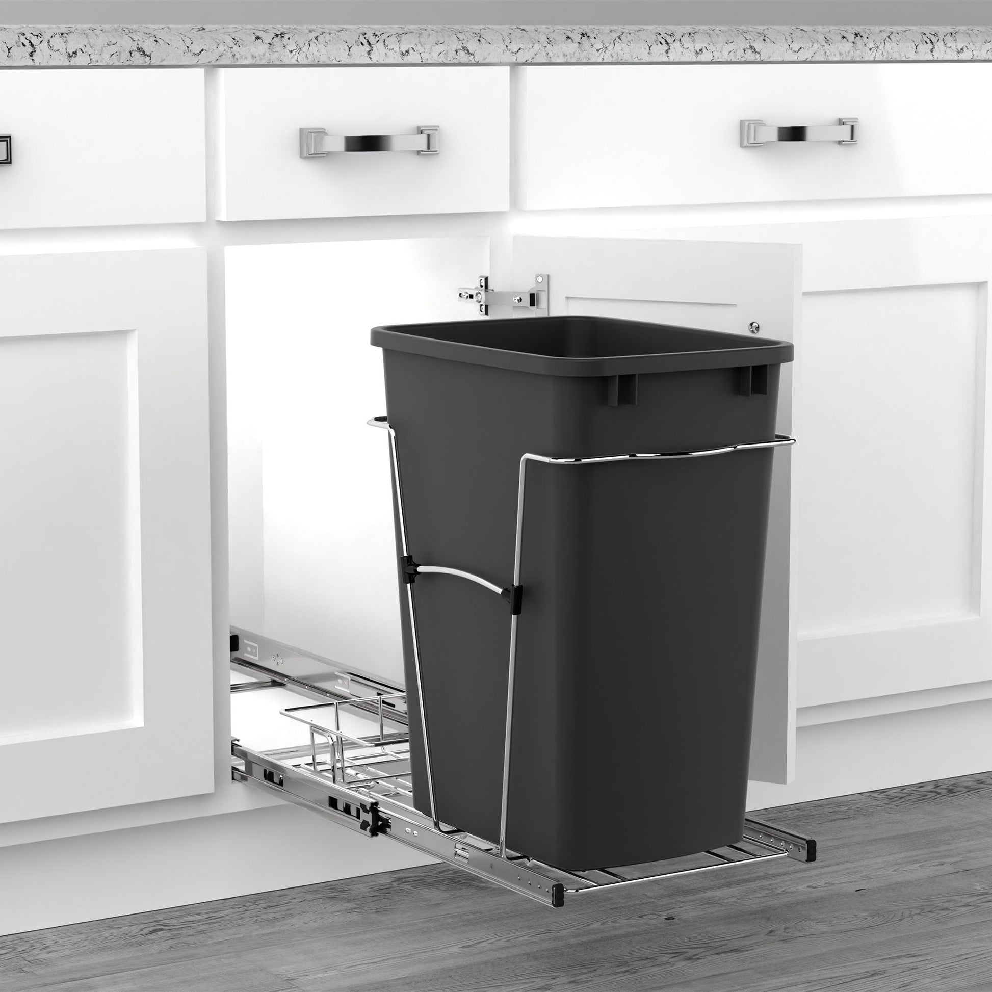 Rev-A-Shelf Pullout Trash Can 35 qt. for Kitchen Cabinets, Black, RV-12KD-18C S