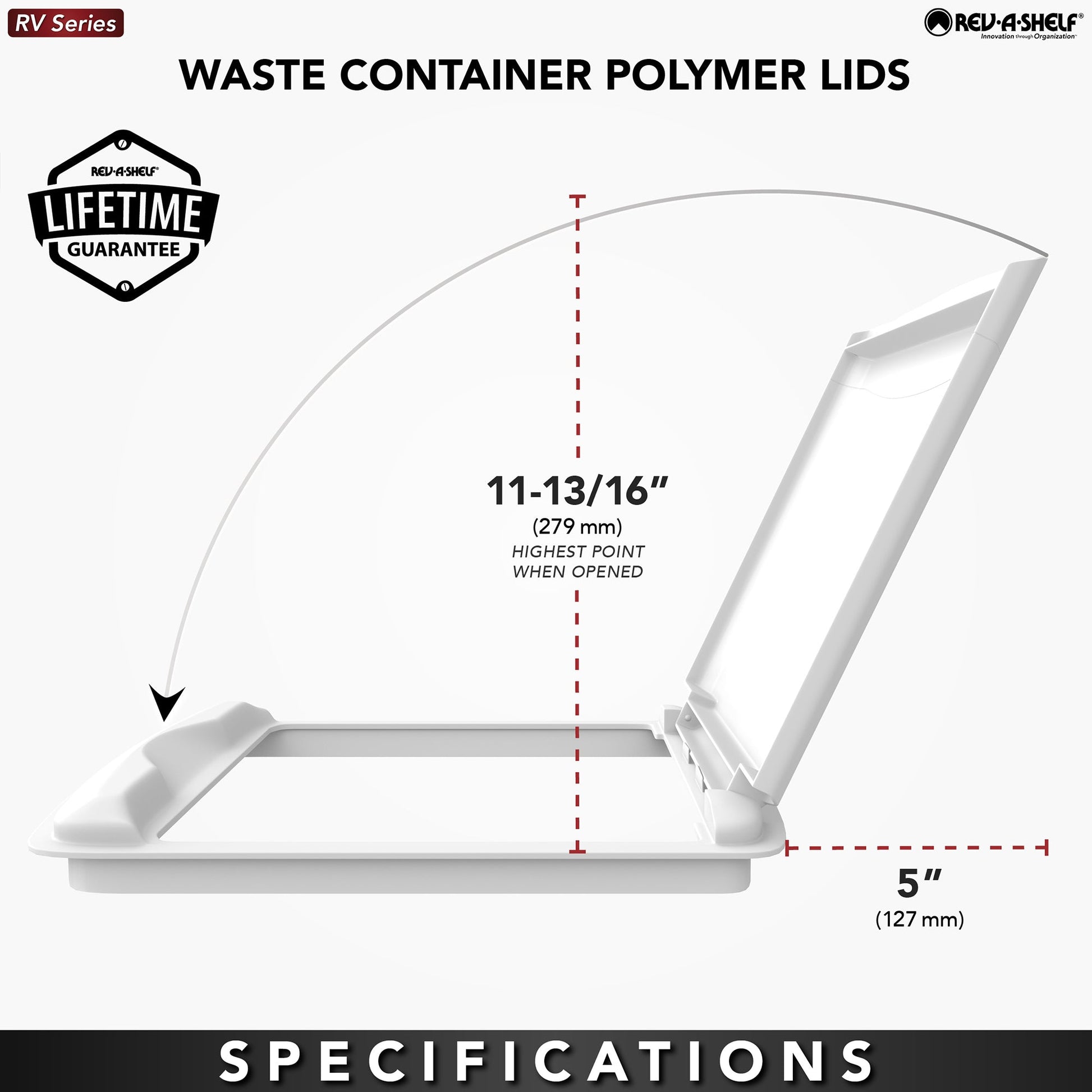 - Designed to fit only Rev-A-Shelf® 50 qt. Waste Containers