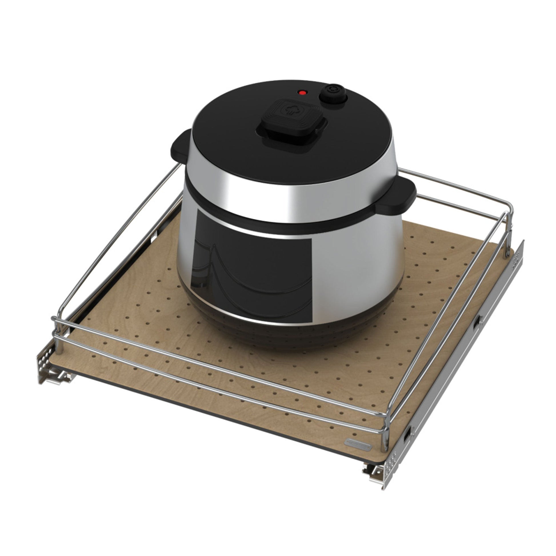 Offering multiple sizes, this kitchen organizer offers plenty of strong storage space to store a variety of kitchen accessories, from cookware, baking goods, pantry items, etc. The shelves are made of durable composite material and have a Pegboard for use with optional accessories. Plus, the Soft-close feature ensures that the drawers will close smoothly and quietly. If you need even more space, add this Single-Tier drawer to our Two-Tier version to create a truly custom Three-Tier solution; No other organizer can do that. This Pullout base organizer is designed for a Base 24 Cabinet.