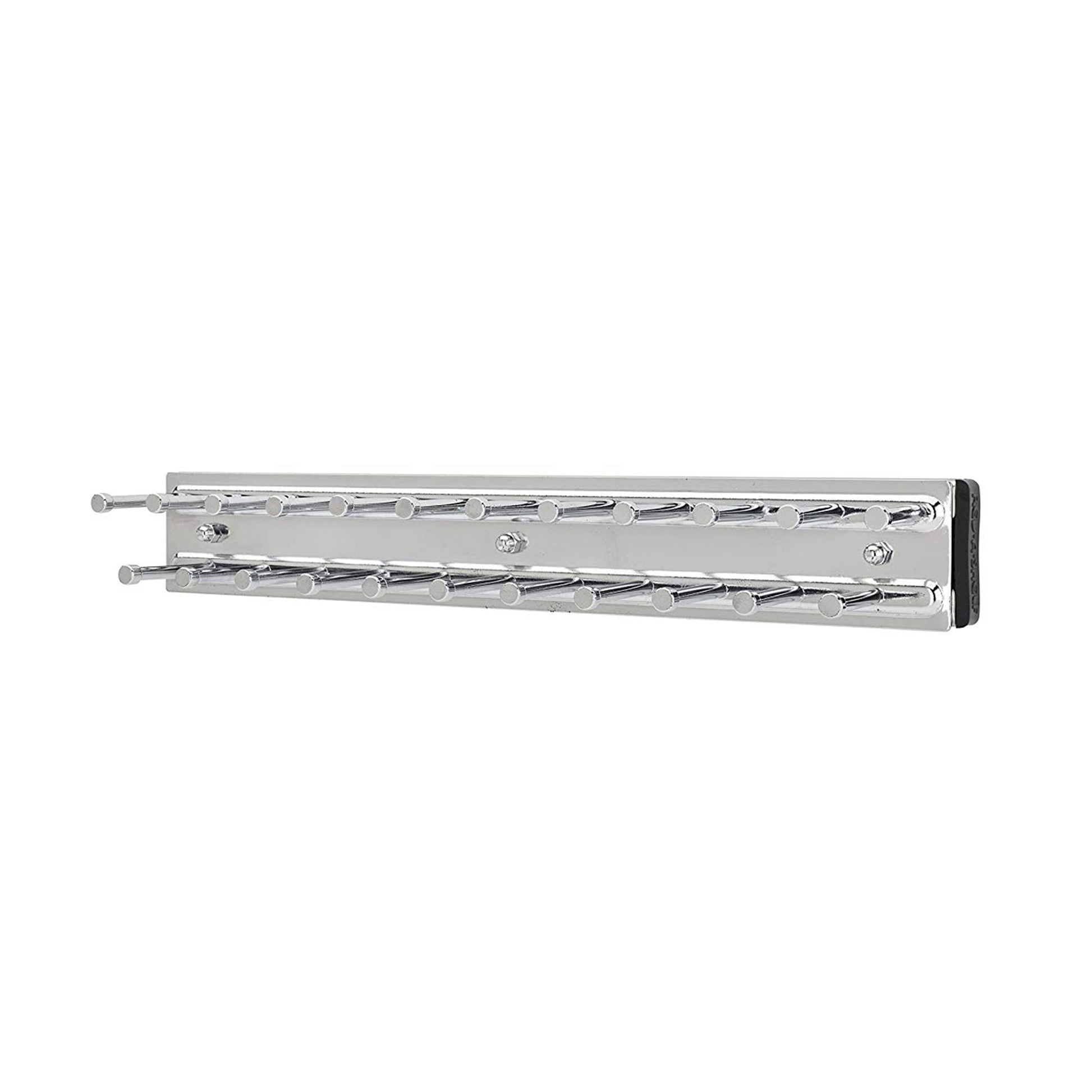 This tie holder organizer unit installs in a short while to bring order to any bedroom, mudroom, or hallway closet, so you’re never wasting too much time on the mount. Its 23 hooks are just the right size and capacity to hold plenty of your favorite ties and even belts in one go. The full-extension ball-bearing slide glides out to provide you with greater accessibility while maximizing the capacity of your closet compared to other tie racks. With a sturdy design and smooth operation, this tie rack unit makes it easy to reorganize and prevent clutter. The beautiful chrome finish looks great with any decor style.