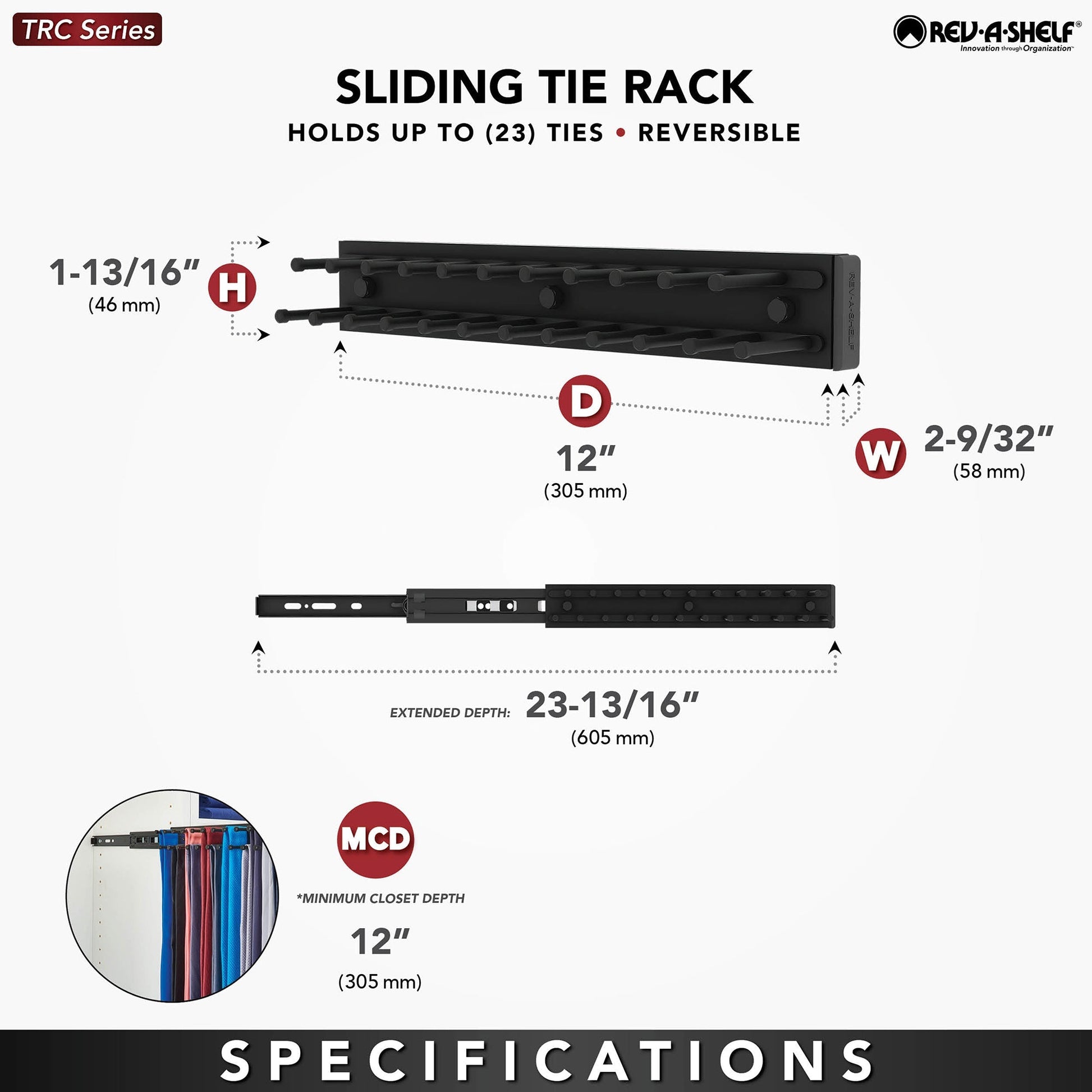 - Organize your ties with the Rev-A-Shelf 12'' extending tie organization rack