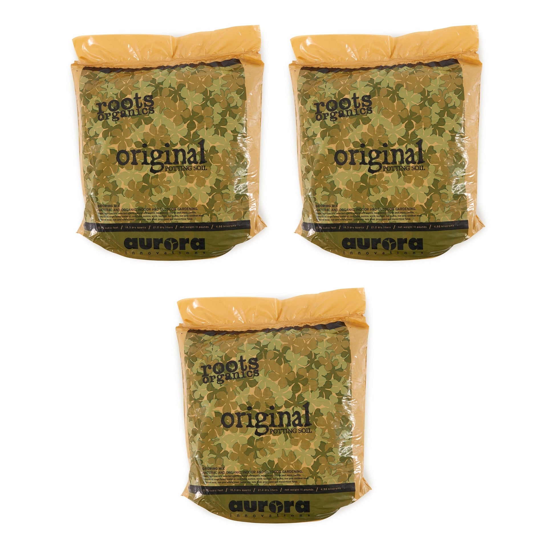 The Roots Organics Potting Soil is already blended with correct proportions of perlite and pumice for excellent drainage and a vigorous root system, Roots Organics potting soil encourages healthier plants and better yields. Comes in a heavy-duty, ready-to-grow, 0.75 cu ft camouflage print bag; simply poke holes in the bottom, cut off the top, and plant.