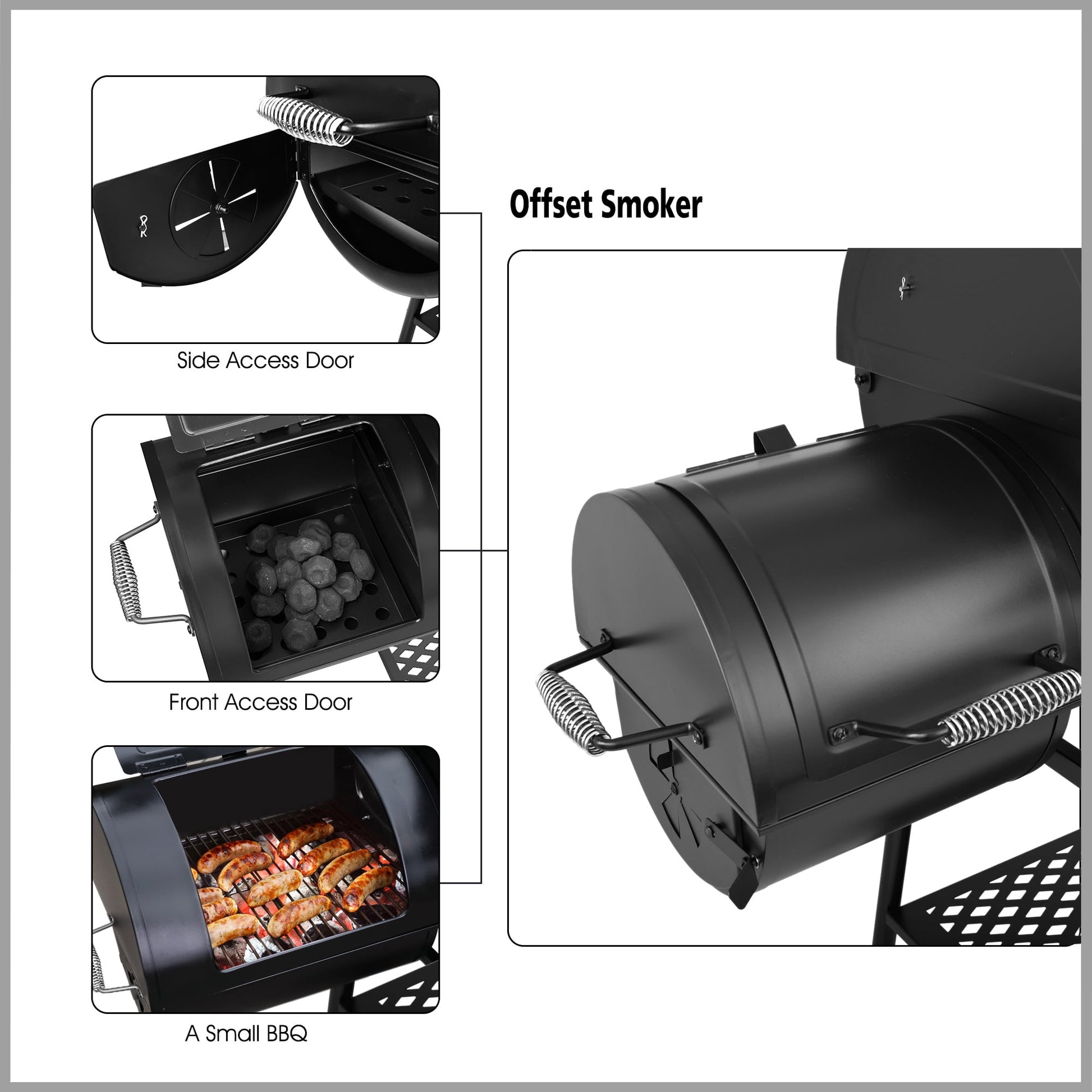 Royal Gourmet® CC1830FC Charcoal Grill with Offset Smoker is perfect for family use and even when having a few friends over. It is also ideal when you just want a simple or quick BBQ on the offset smoker. Main chamber of the grill retains heat very well and keeps meat more tender and juicier, which also delivers a great smoked taste. Easy to assemble, easy to use and easy to clean. If you are not a barbecue master already, this grill will make you become a seasoned griller. Let’s enjoy life and BBQ with Royal Gourmet®!