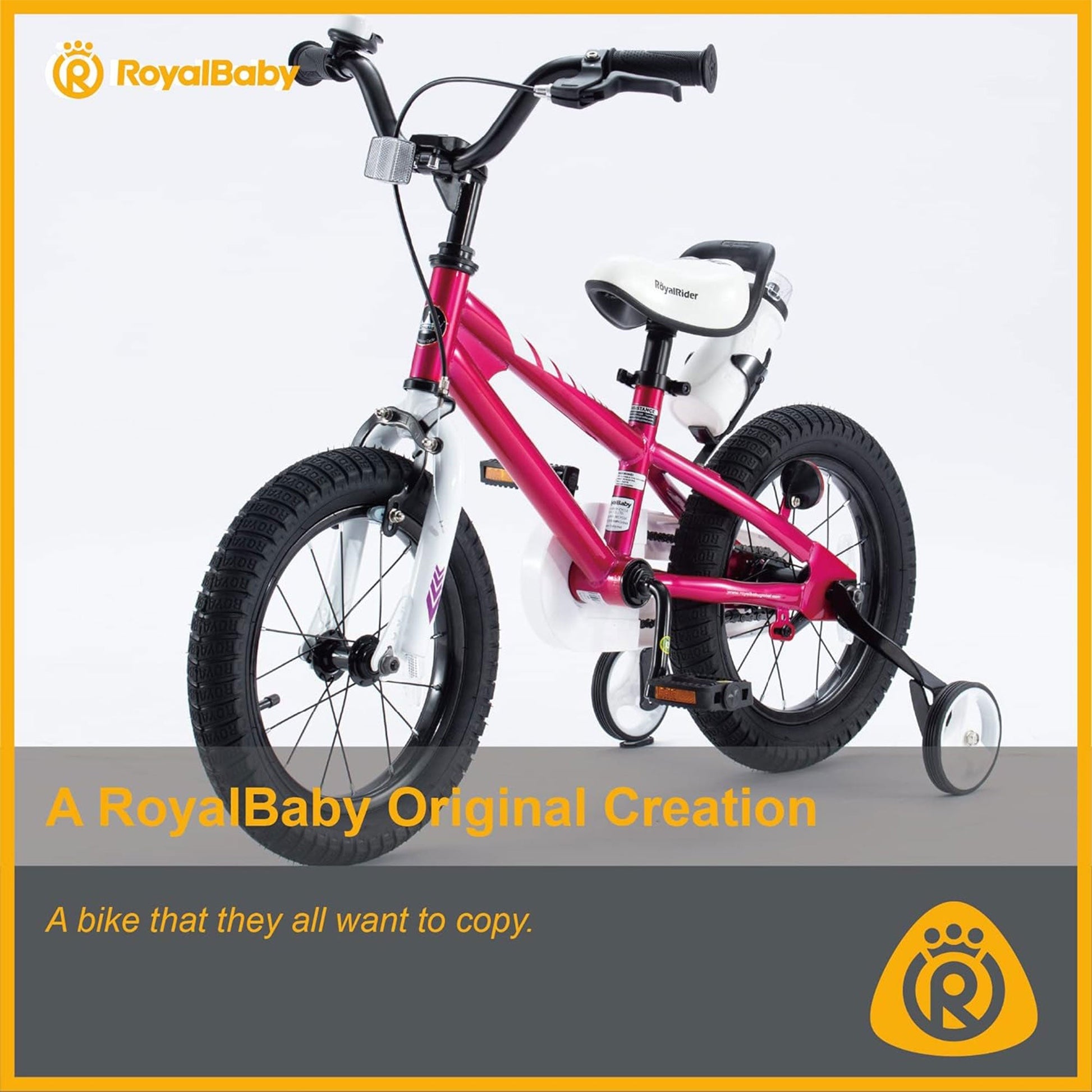 RoyalBaby Freestyle 16 Inch Kids Bike with Training Wheels & Kickstand, Fuchsia