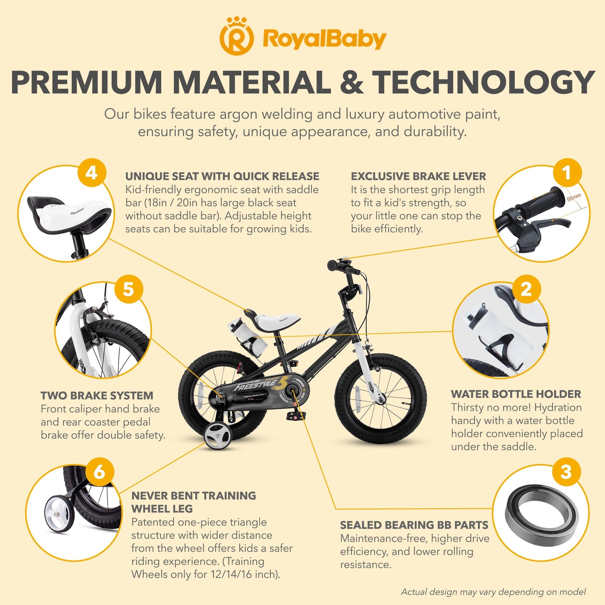 - RoyalBaby Freestyle kid's BMX-style bike is all about fun, creativity, and freedom with a sporty look for the next cycling star