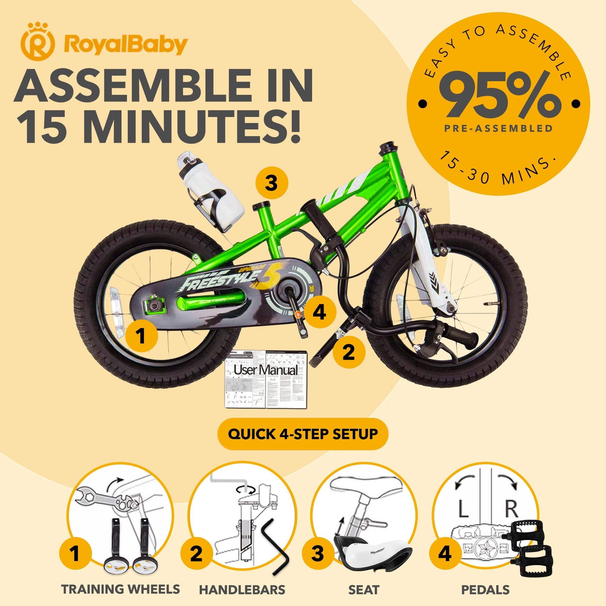 Its combination of safety features, stylish design, and durable construction makes this bicycle a must-have for any child ready to take on the world of biking. Watch your child's confidence soar as they enjoy the freedom and joy of riding the RoyalBaby Freestyle Kid's Bike.