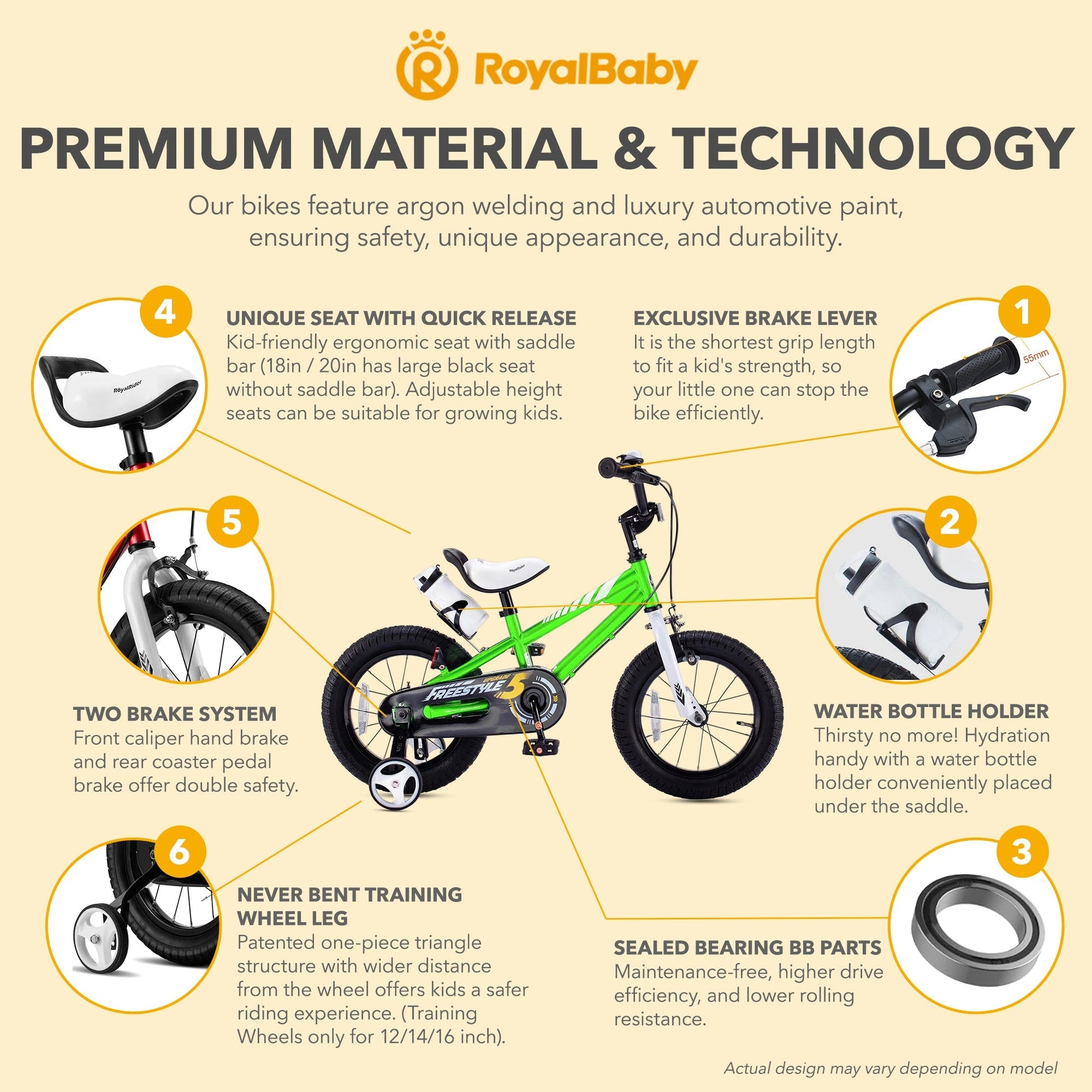 - RoyalBaby Freestyle kid's BMX-style bike is all about fun, creativity, and freedom with a sporty look for the next cycling star