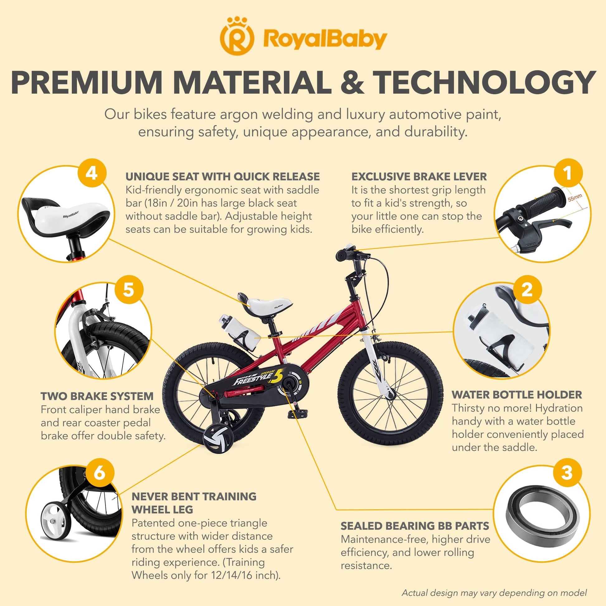 - RoyalBaby Freestyle kid's BMX-style bike is all about fun, creativity, and freedom with a sporty look for the next cycling star