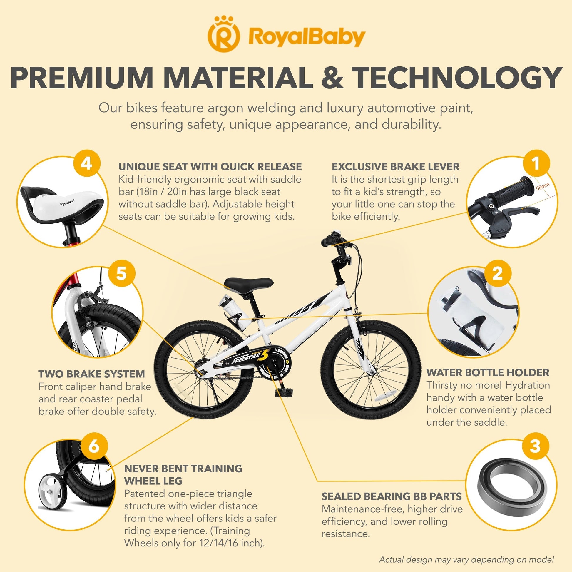 - RoyalBaby Freestyle kid's BMX-style bike is all about fun, creativity, and freedom with a sporty look for the next cycling star