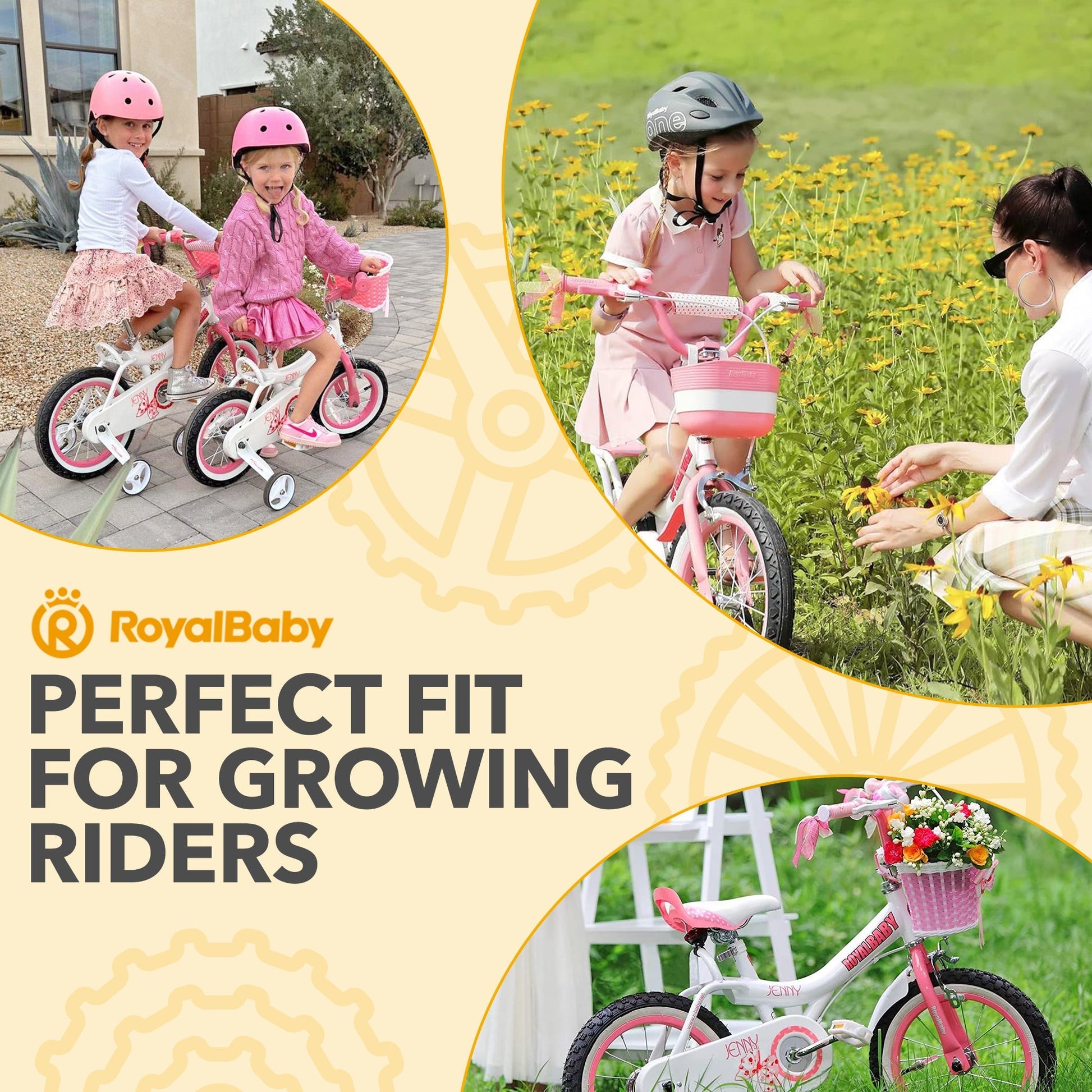 RoyalBaby Princess Girl Bike 16" w/Training Wheels & Kickstand, Bunny/Fuchsia