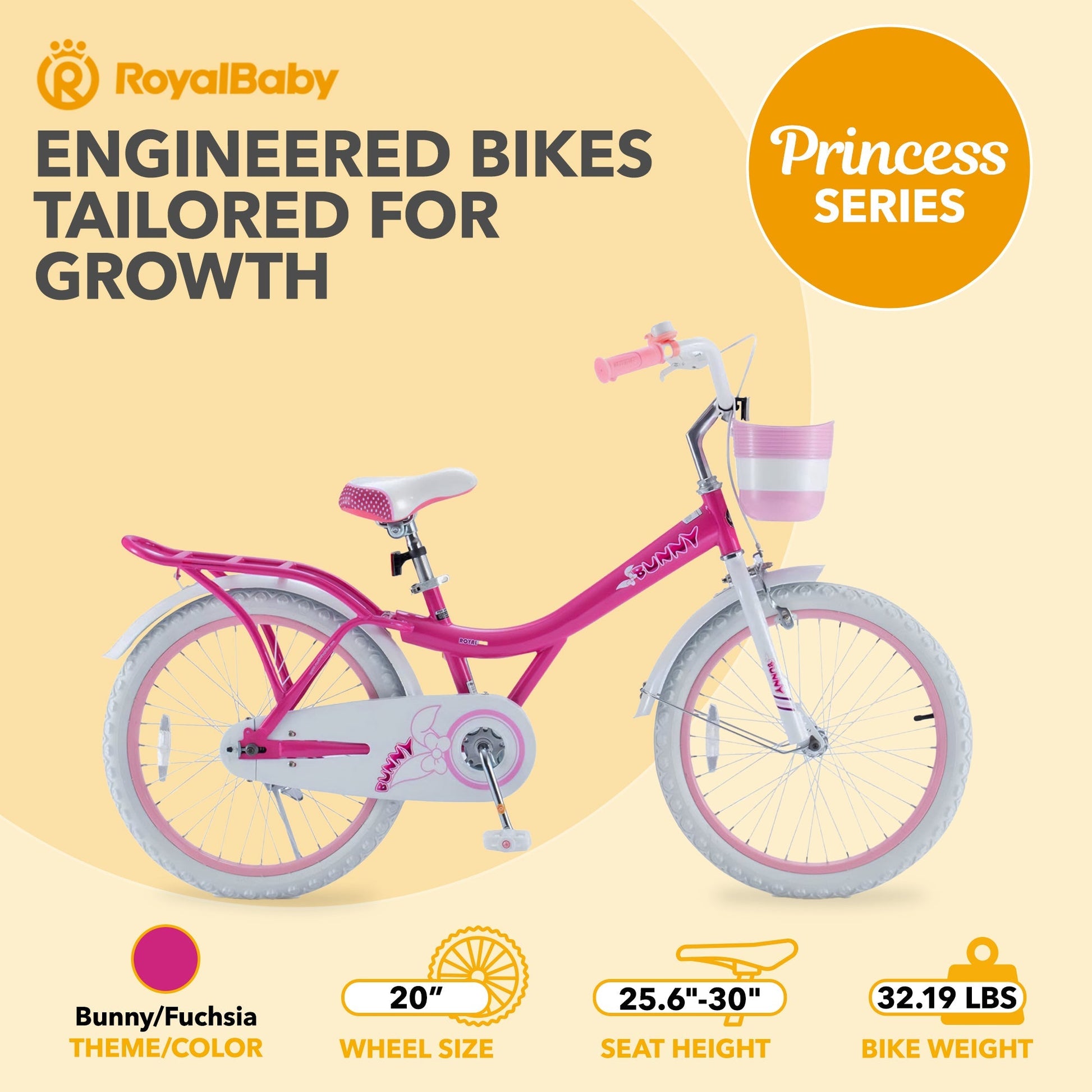 RoyalBaby Princess Girl Kids Outdoor Bicycle 20" with Kickstand, Bunny/Fuchsia